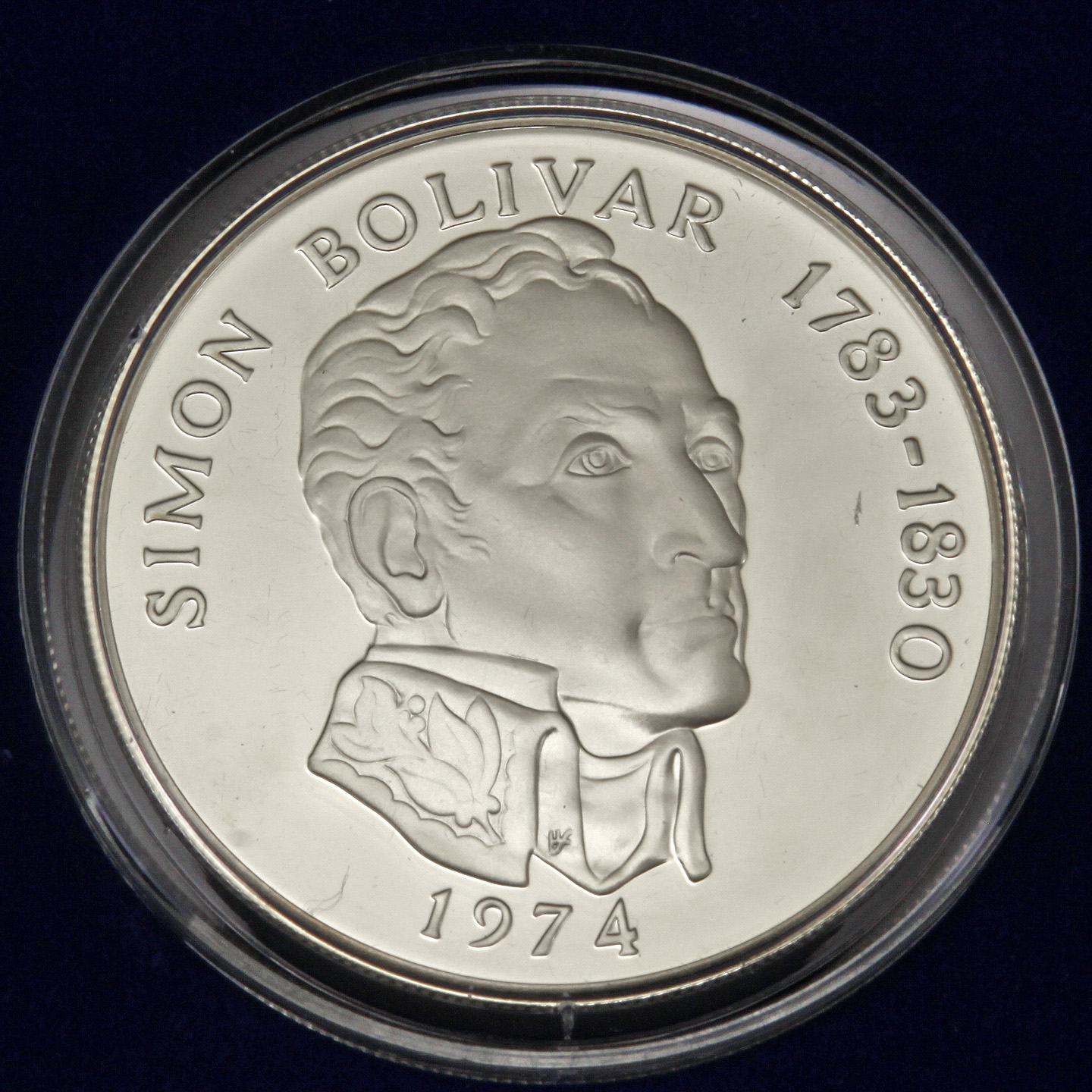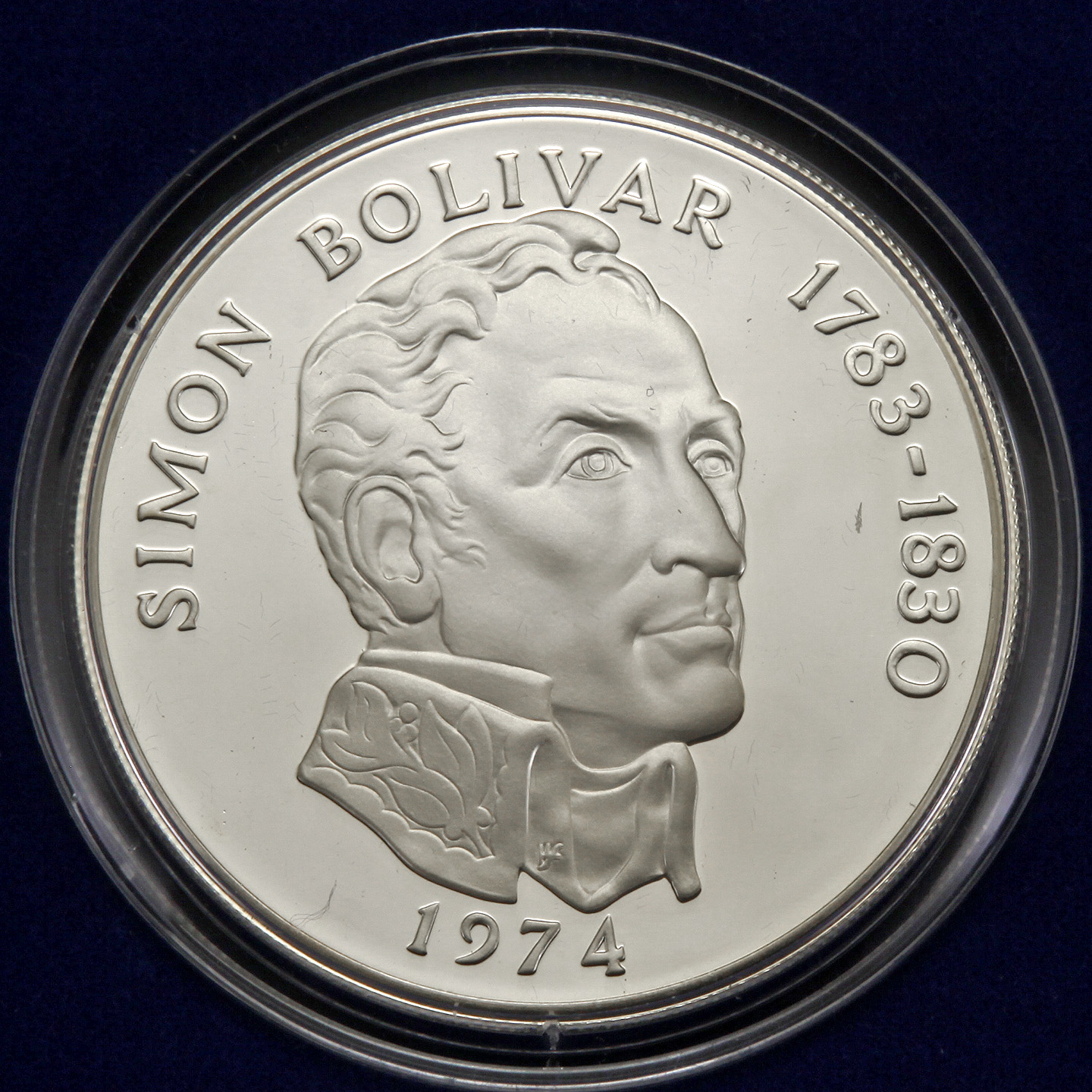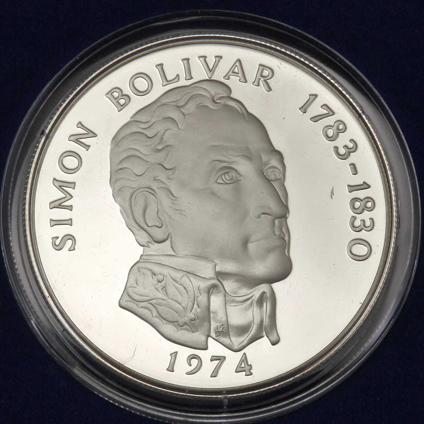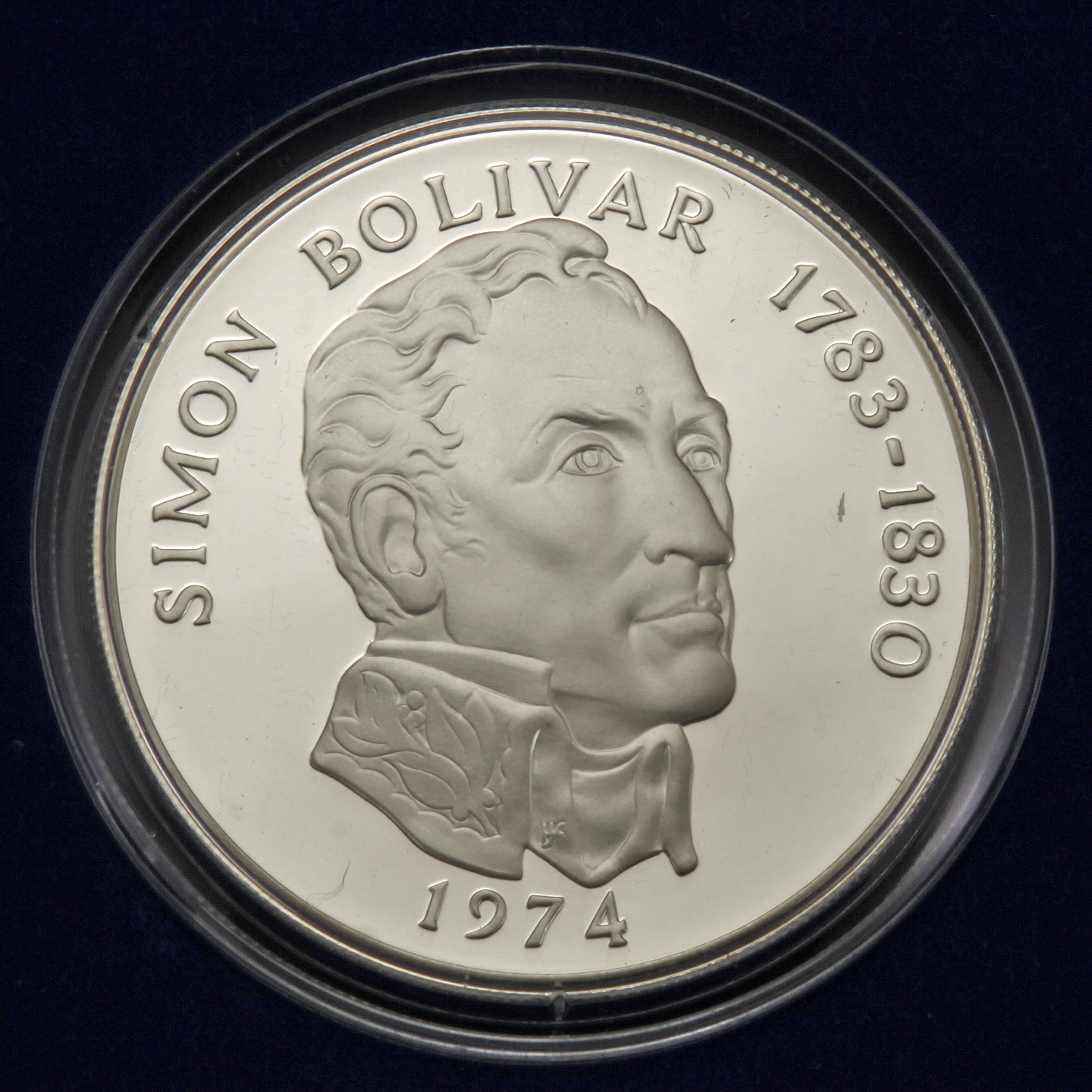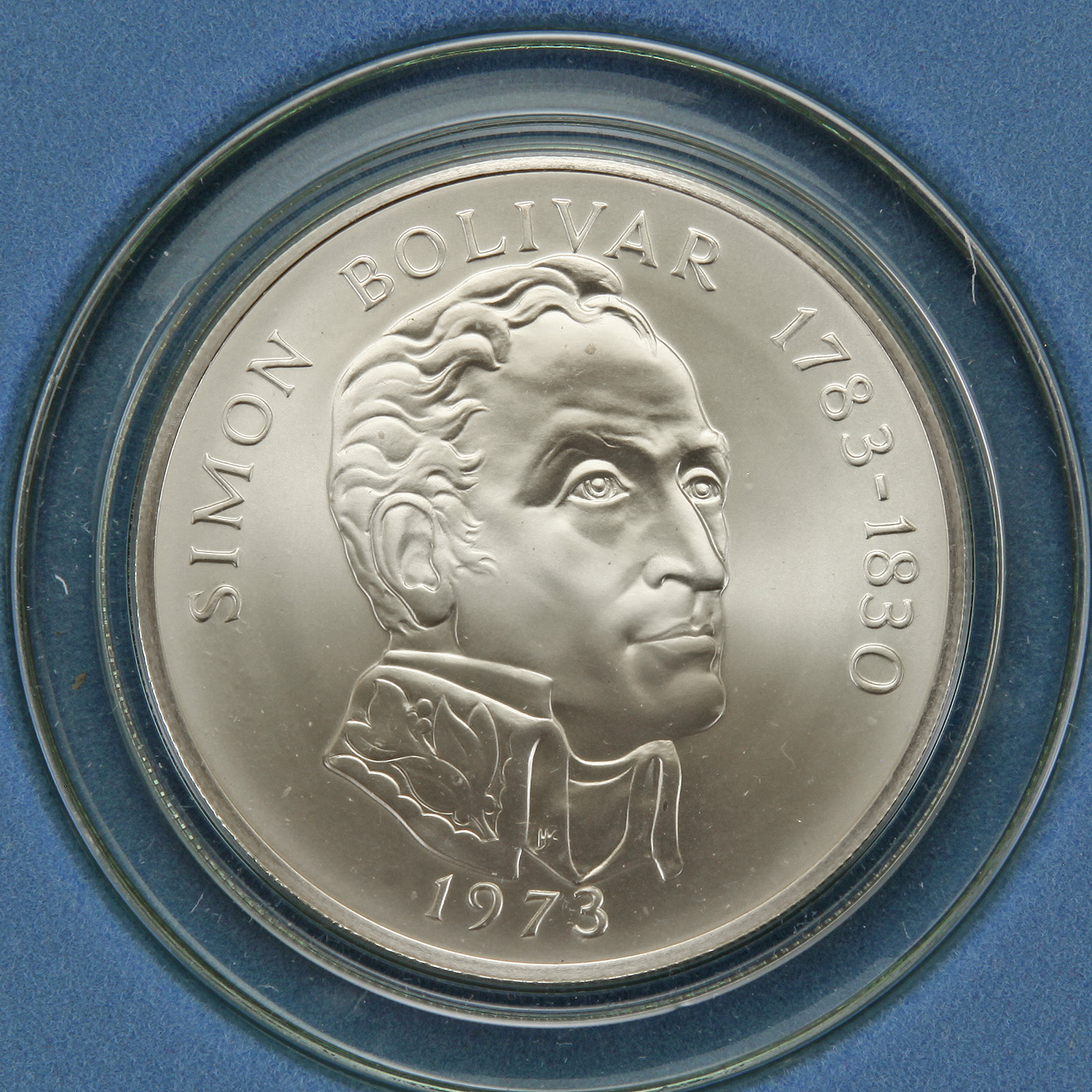 • Reverse: Bust of Simon Bolivar above the date.