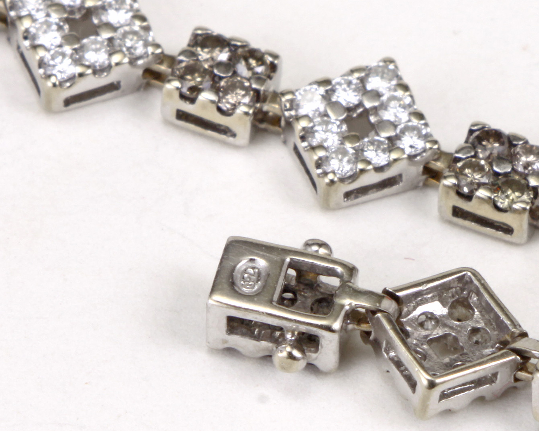 2.73CTTW CA. 1980 MODERN 18KT WHITE GOLD & DIAMOND BRACELET.