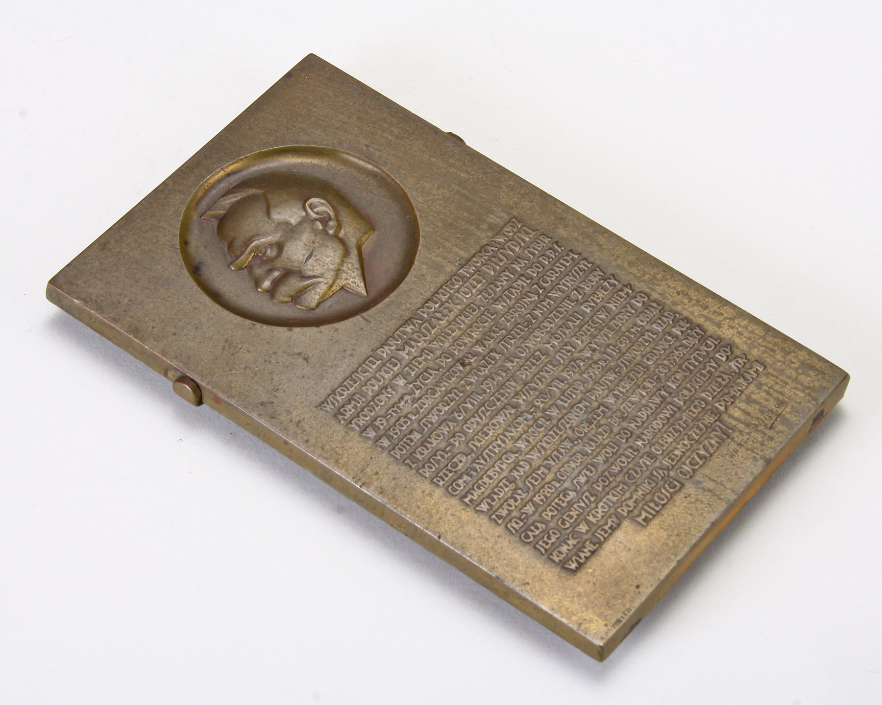 The rectangular medal decorated with the left facing profile: