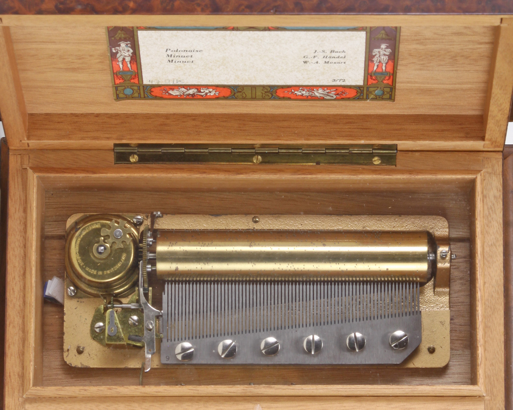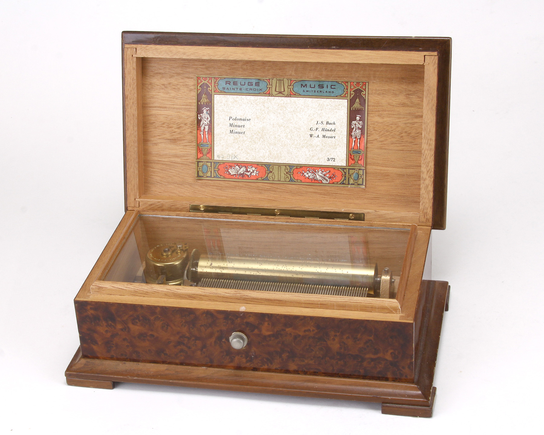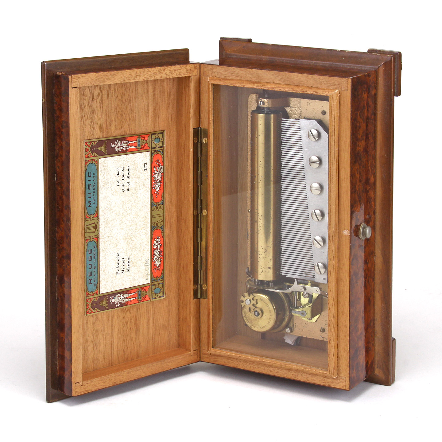 A Reuge Burlwood Music Box, circa 1975.