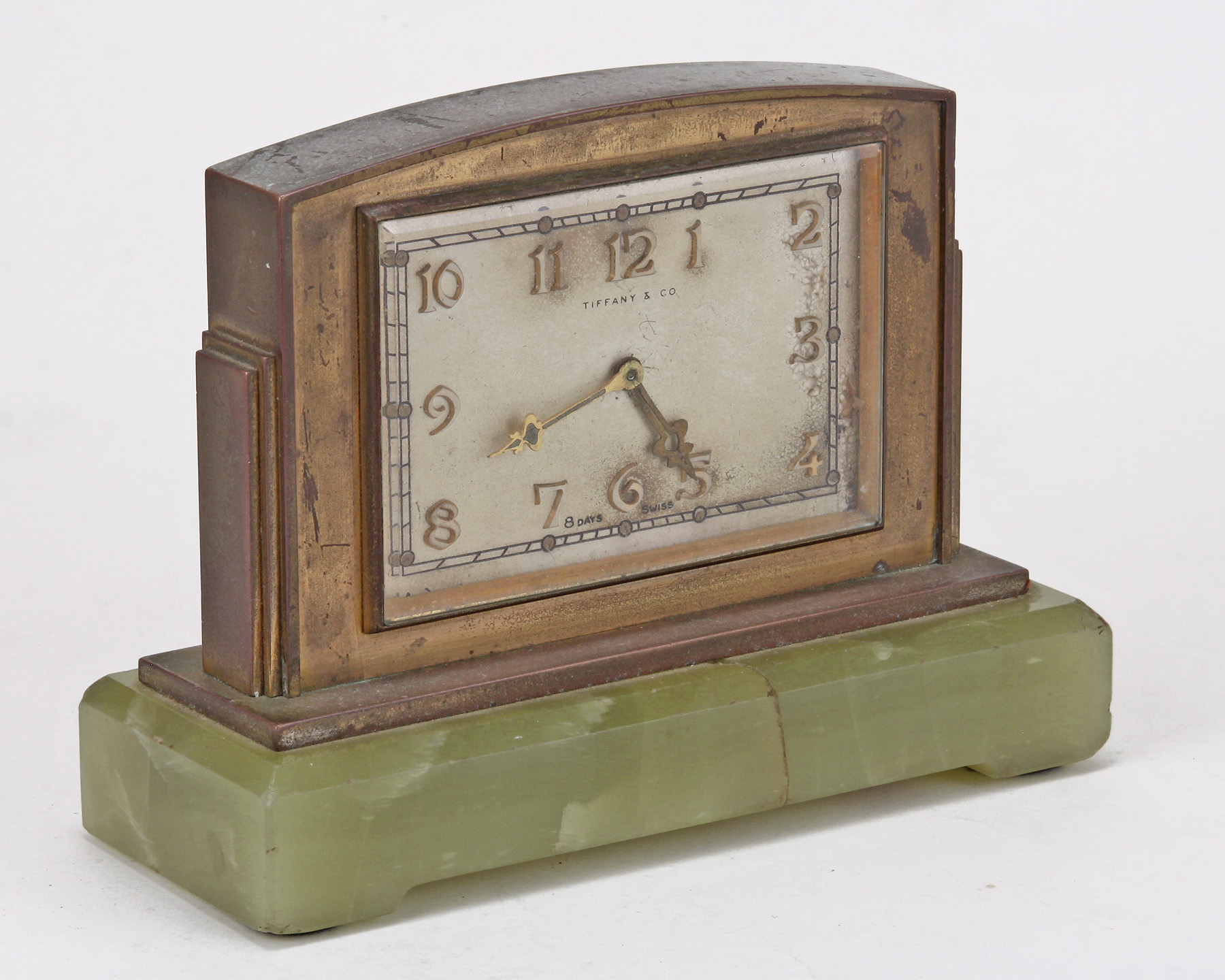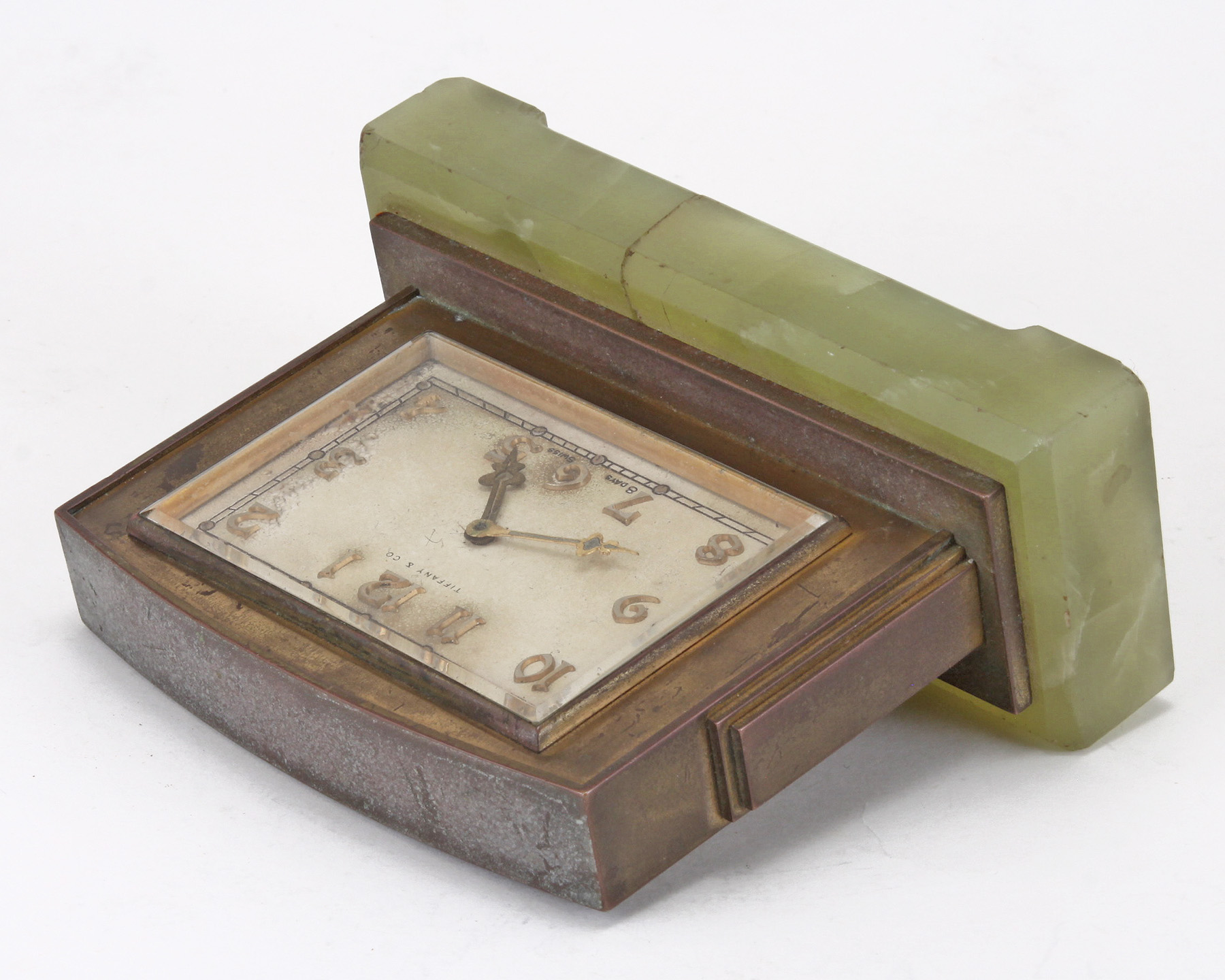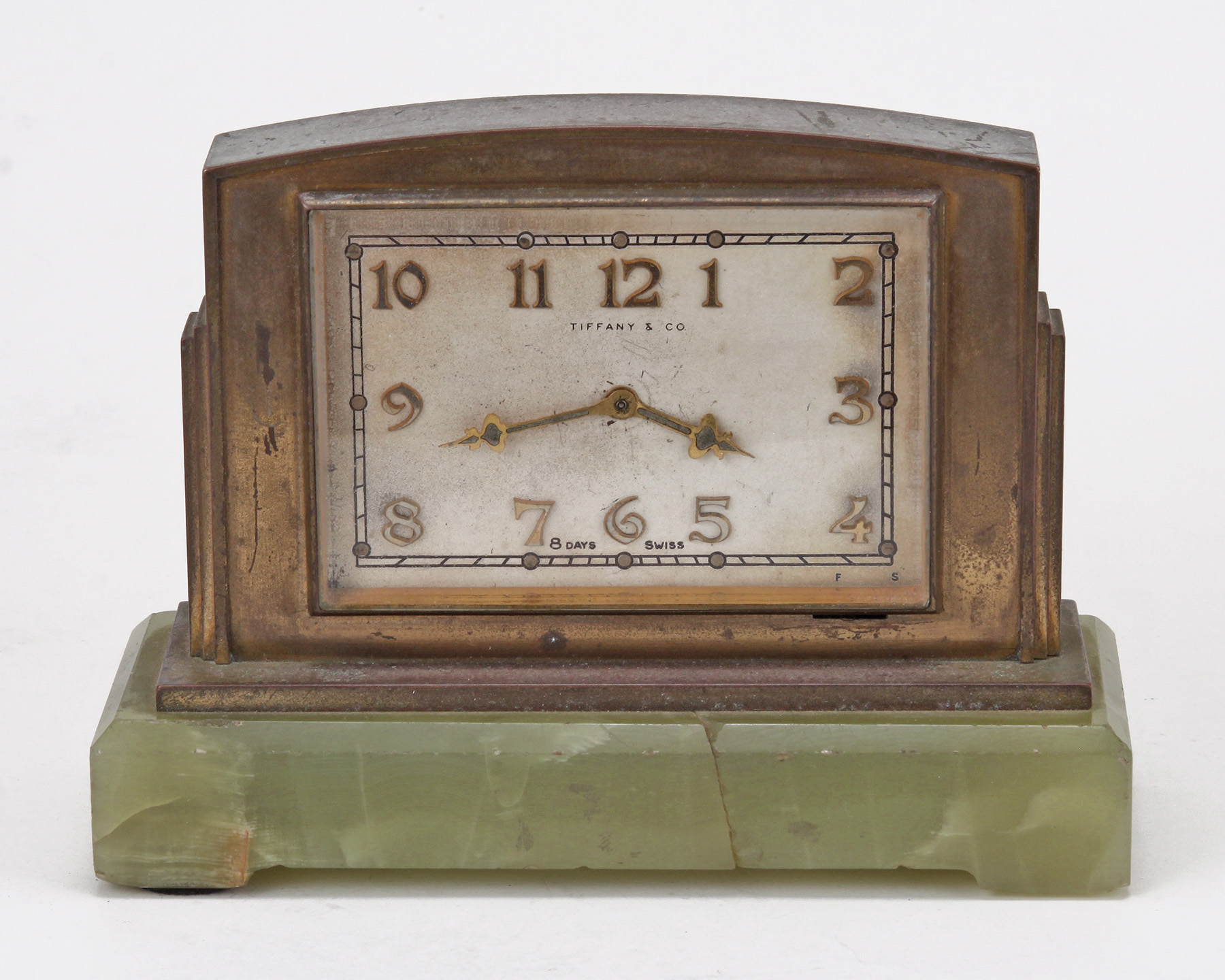 A Fine Tiffany and Co. Brass and Green Onyx Clock
