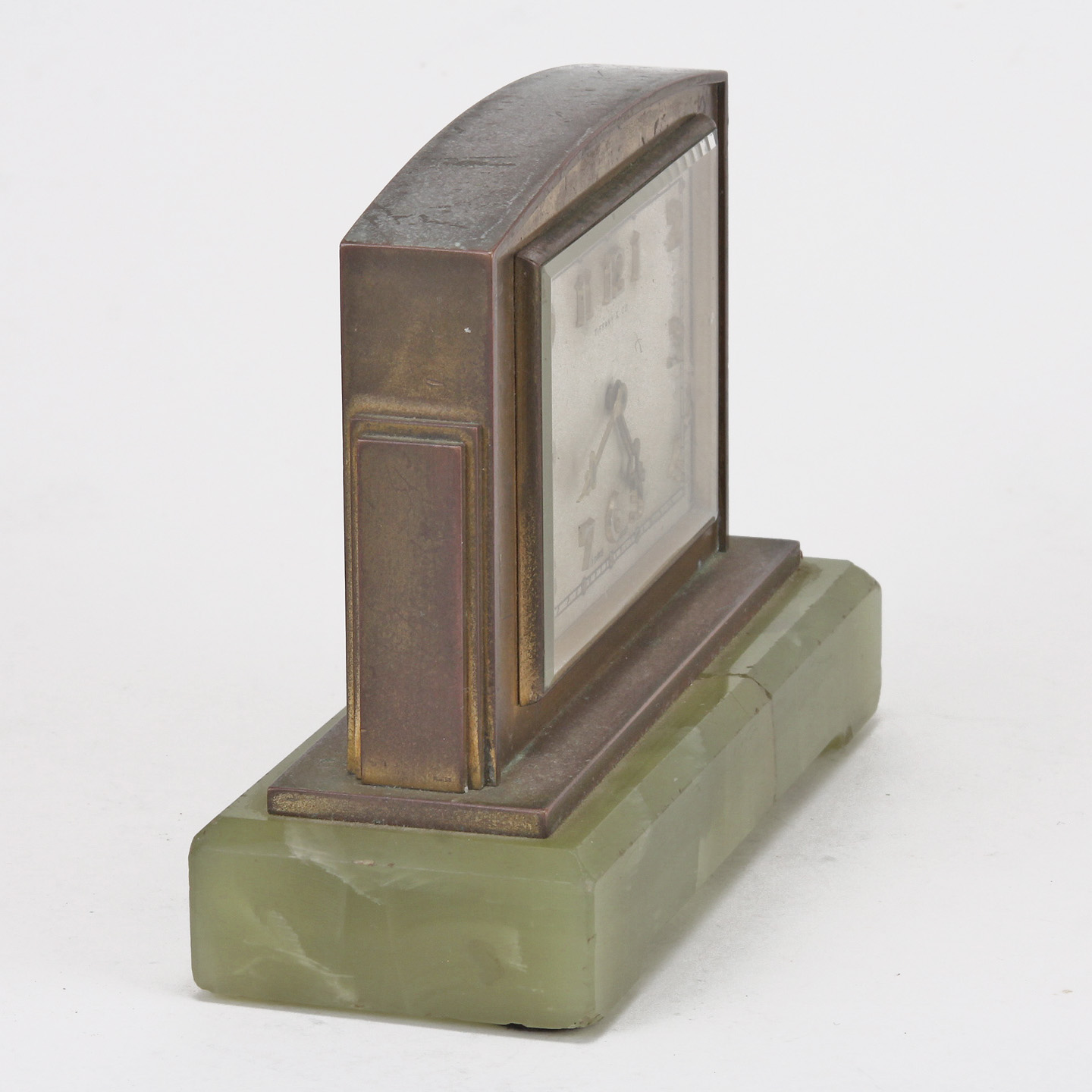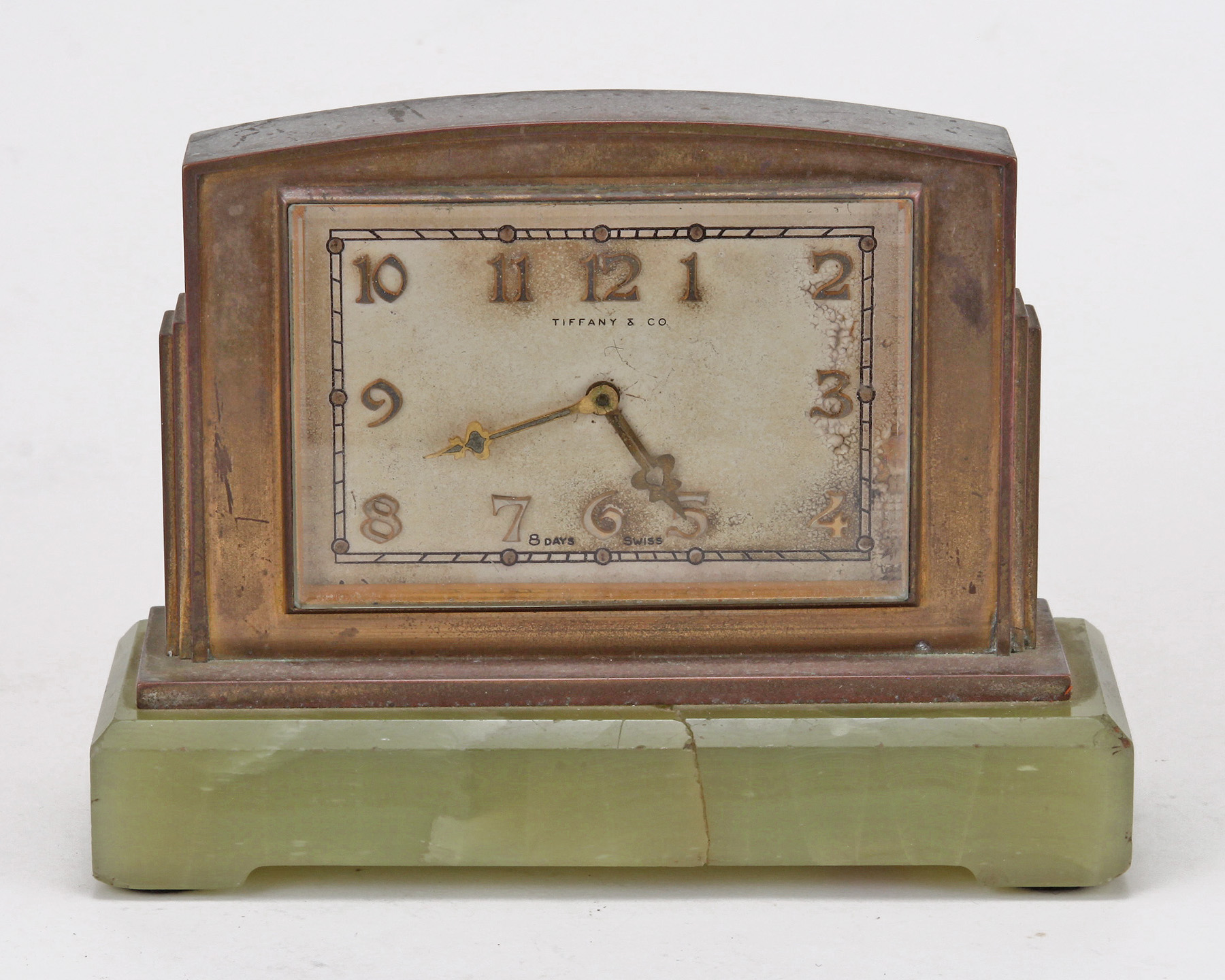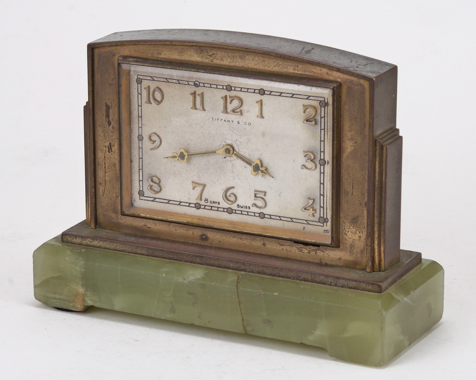 A Fine Tiffany and Co. Brass and Green Onyx Clock