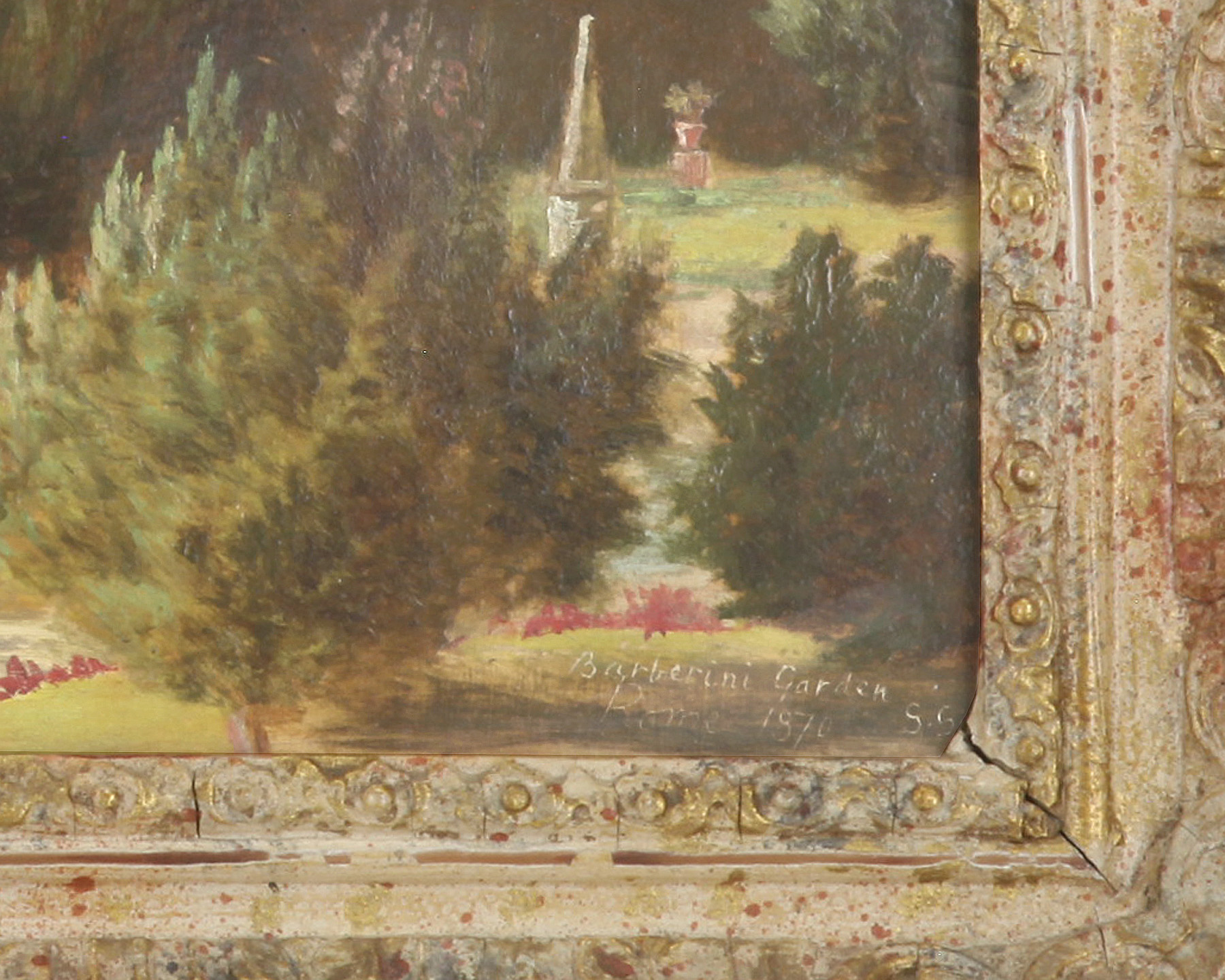 Additional Notes: Housed in its original hand carved gilt wooden and gesso frame.
