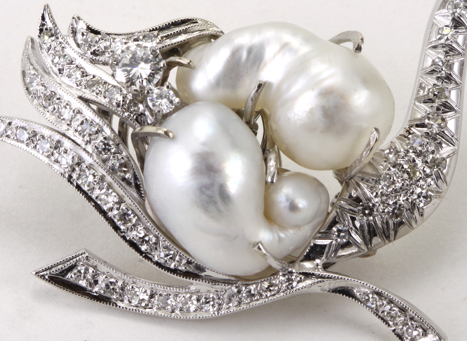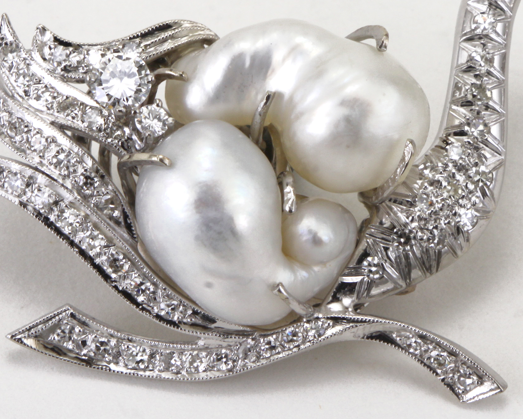 Two baroque pearl ap. 18.3 x 11.1mm., round and single cut diamonds ap. 2.35 cts.,