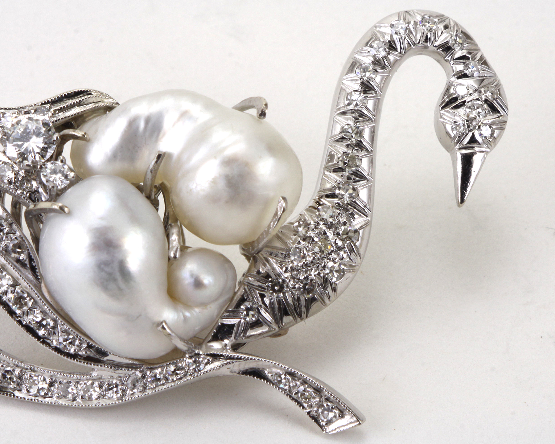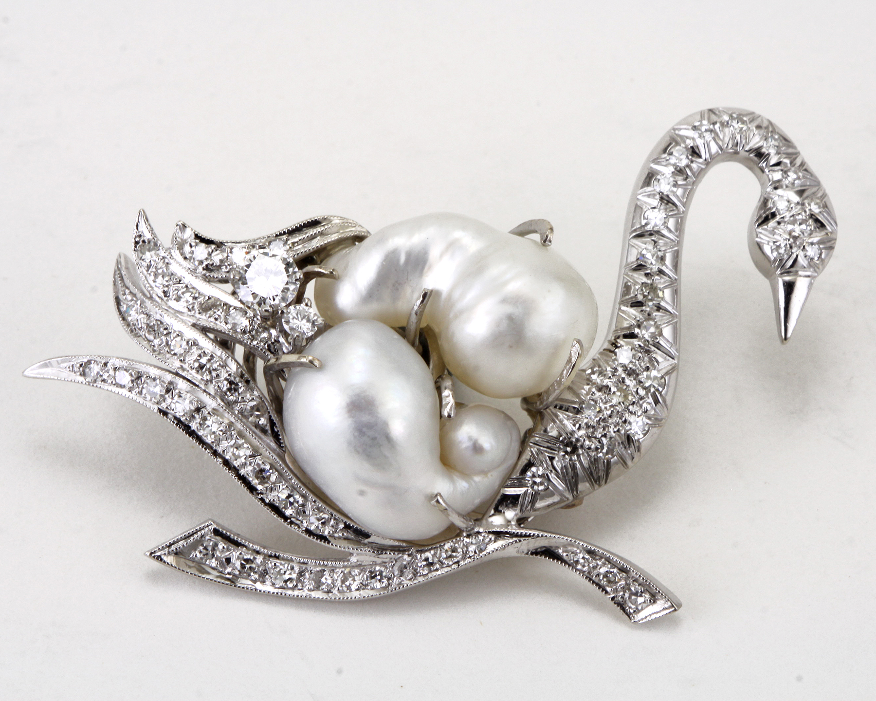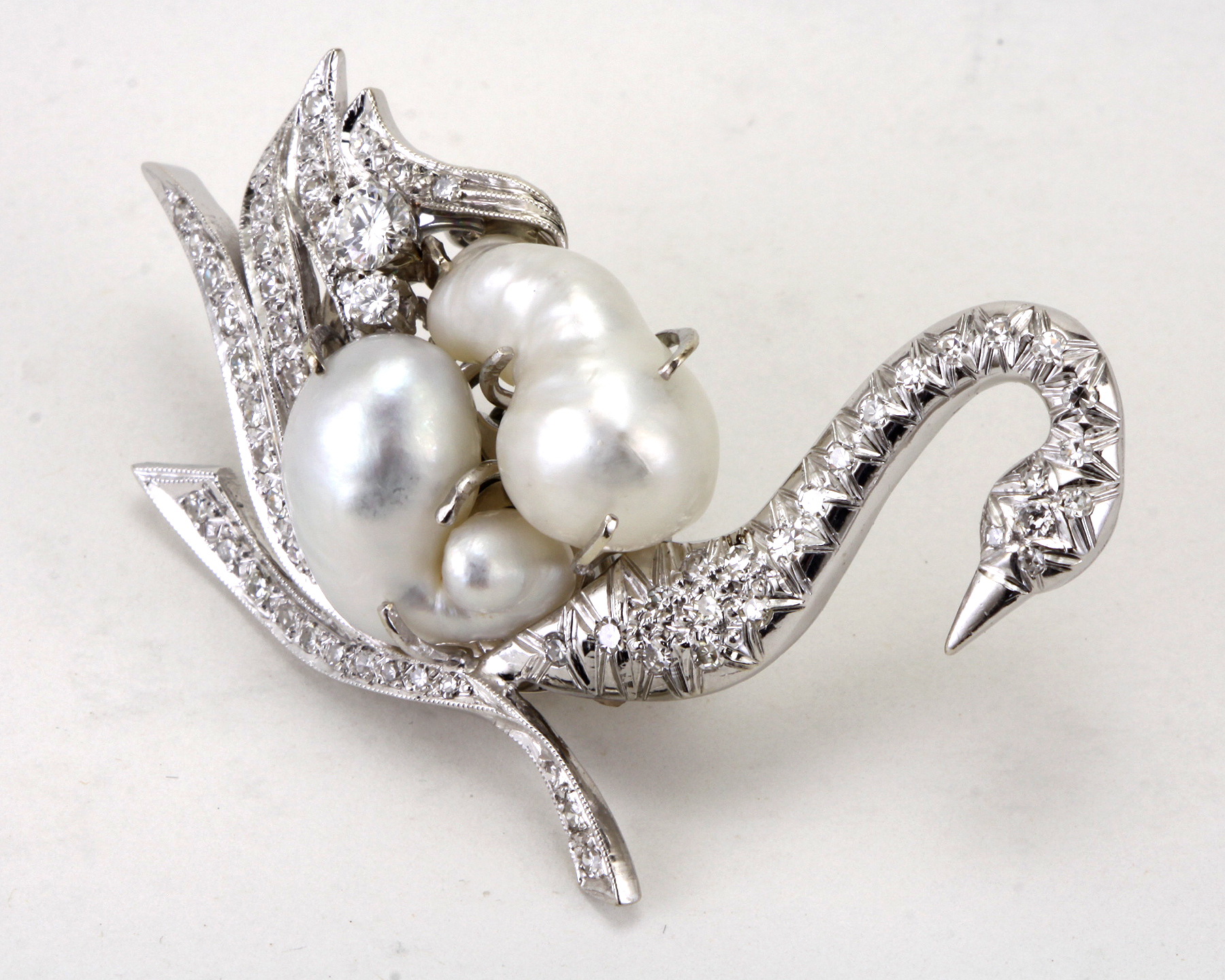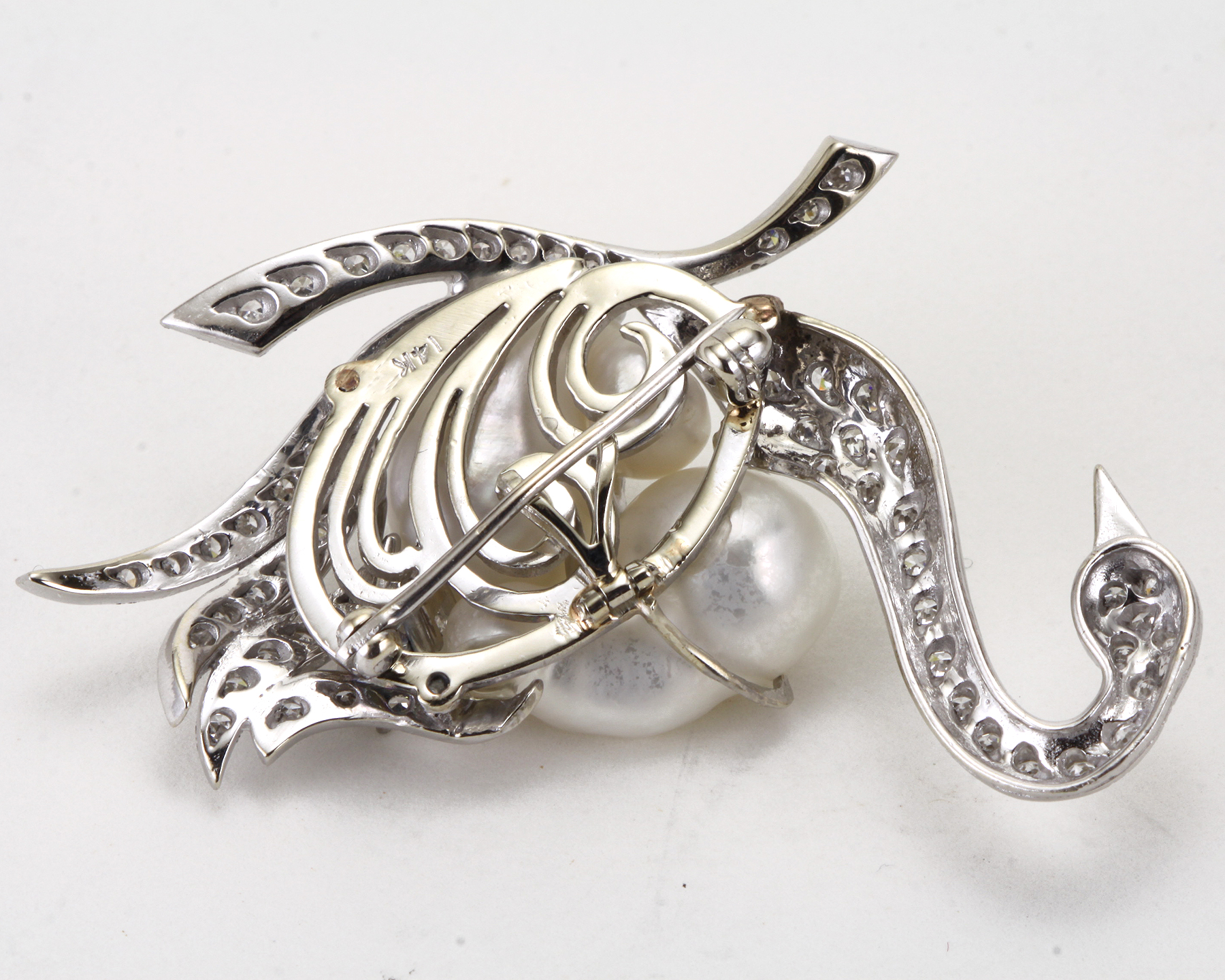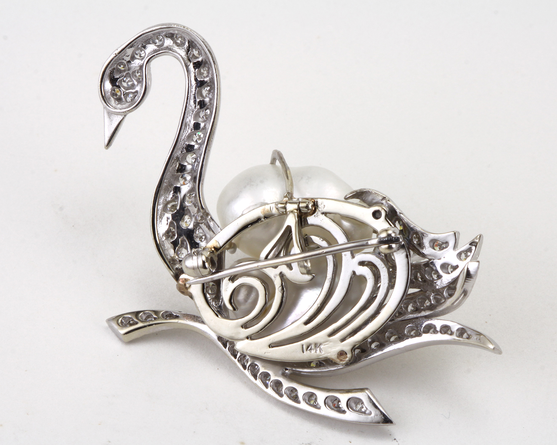 Attributed to Verdura 14kt Gold, Baroque Cultured Pearl, Diamond, Swan Clip-Brooch.