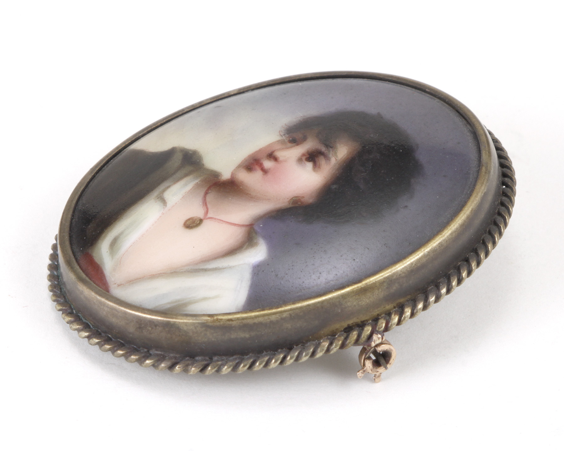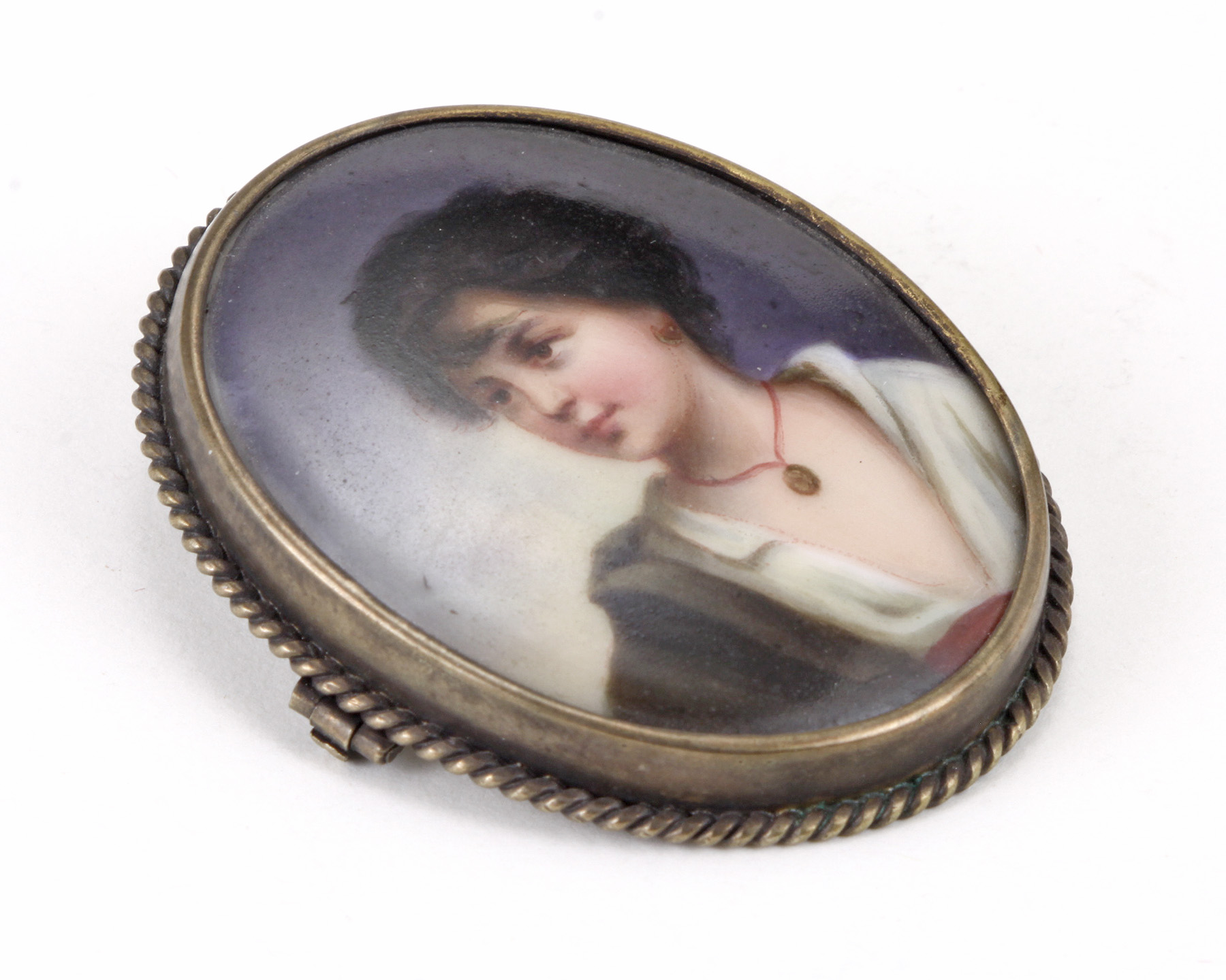 Early 20th century continental school hand painted porcelain female portrait brooch.