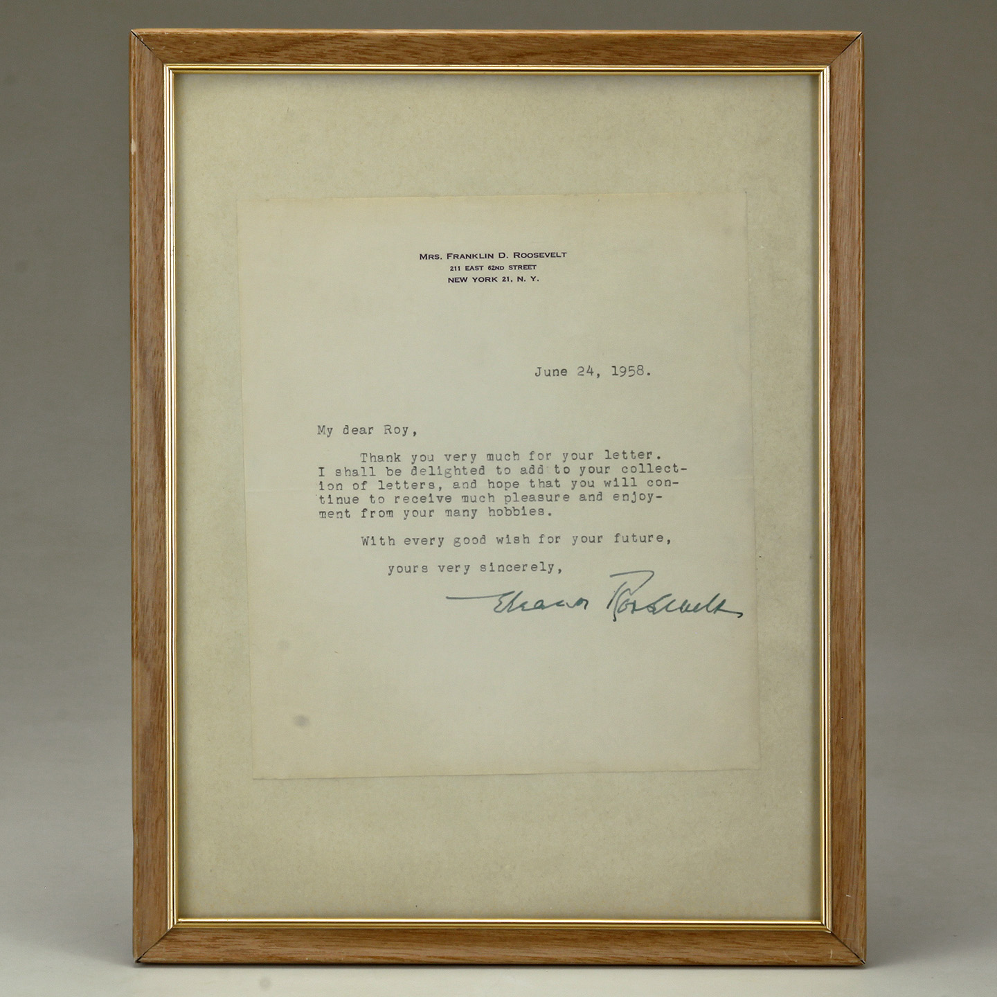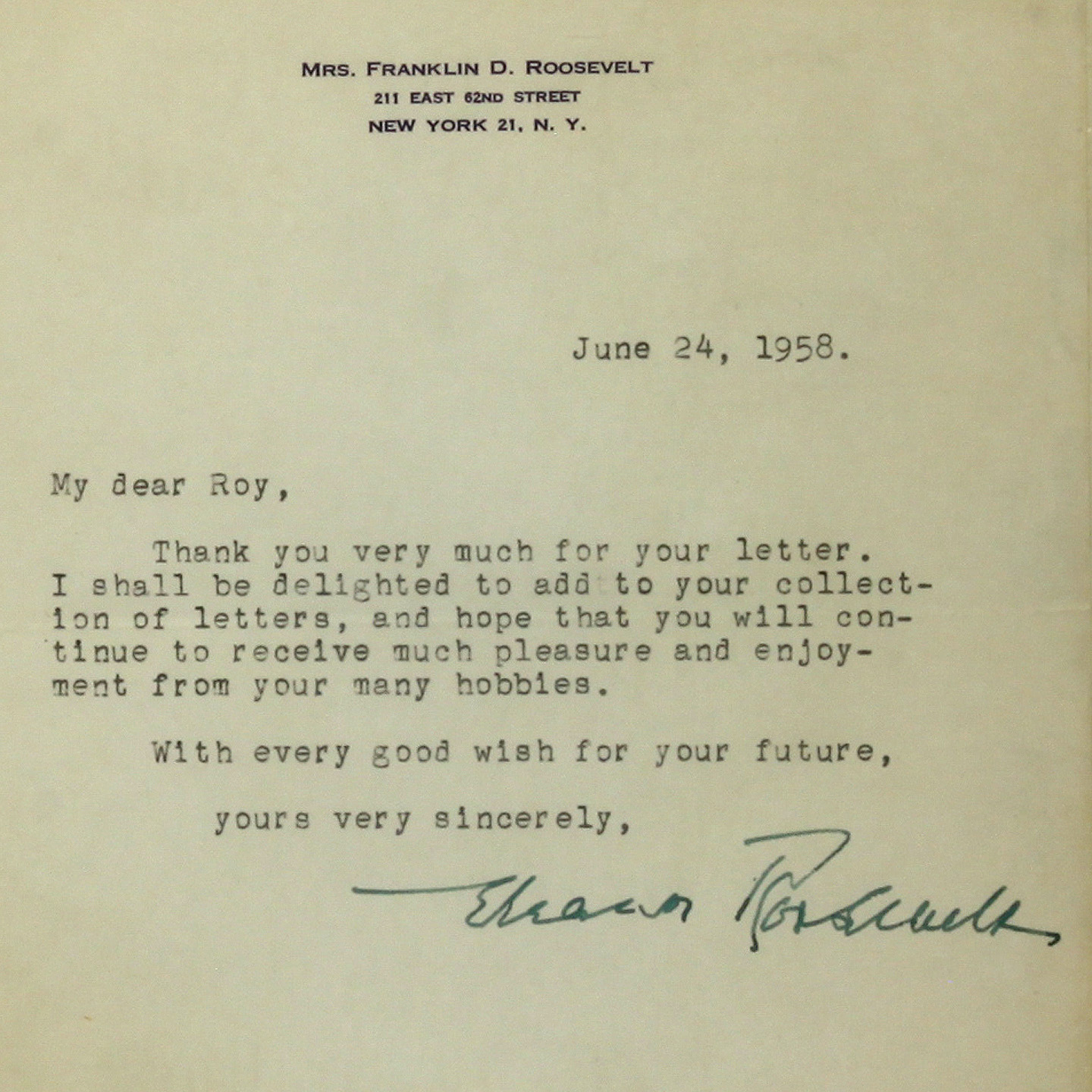 Signed "Eleanor Roosevelt."