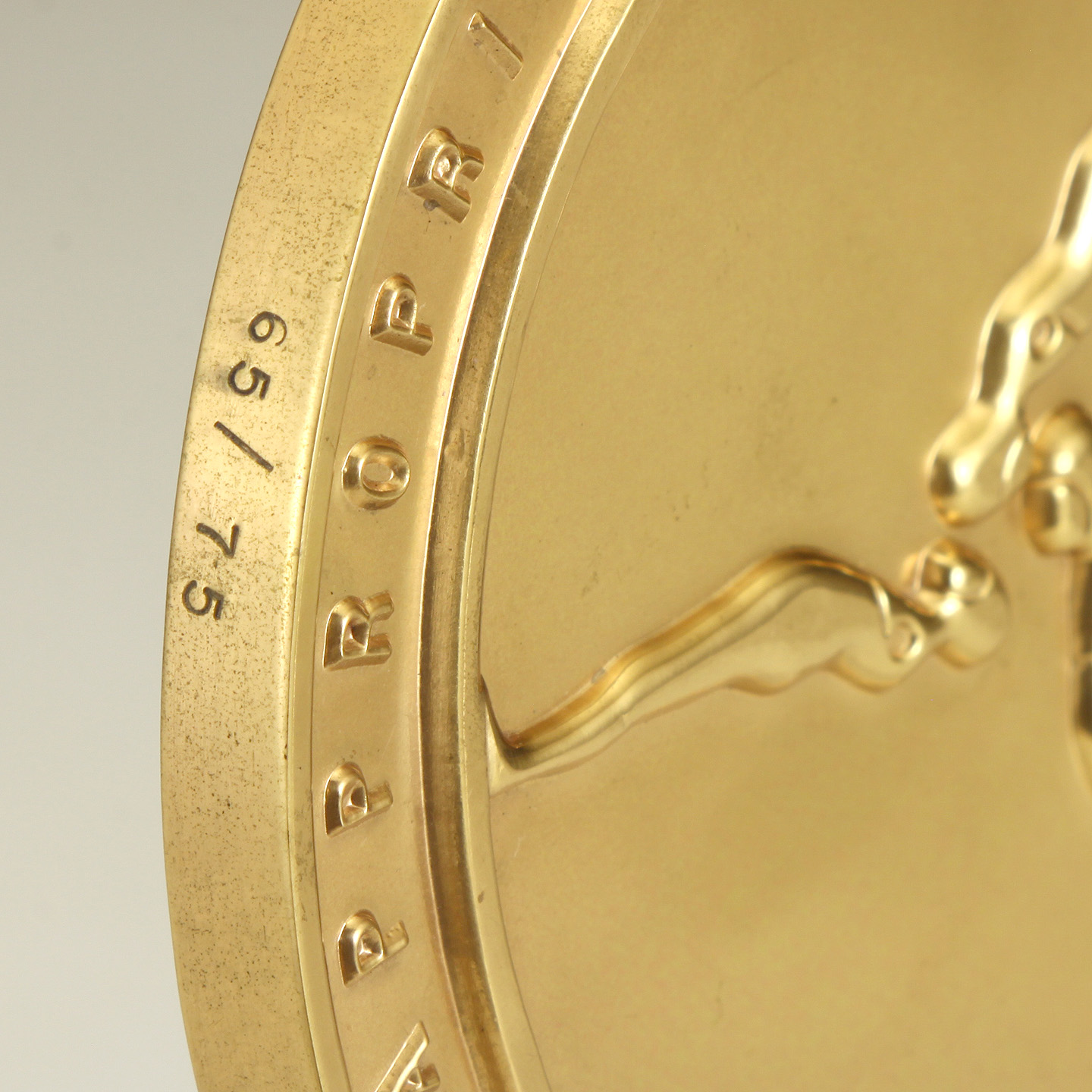 Manscape medallion was produced in silver and bronze: 125 pieces total. Silver: 50 Bronze: 75 of which this is number 65 of 75 – in bronze.