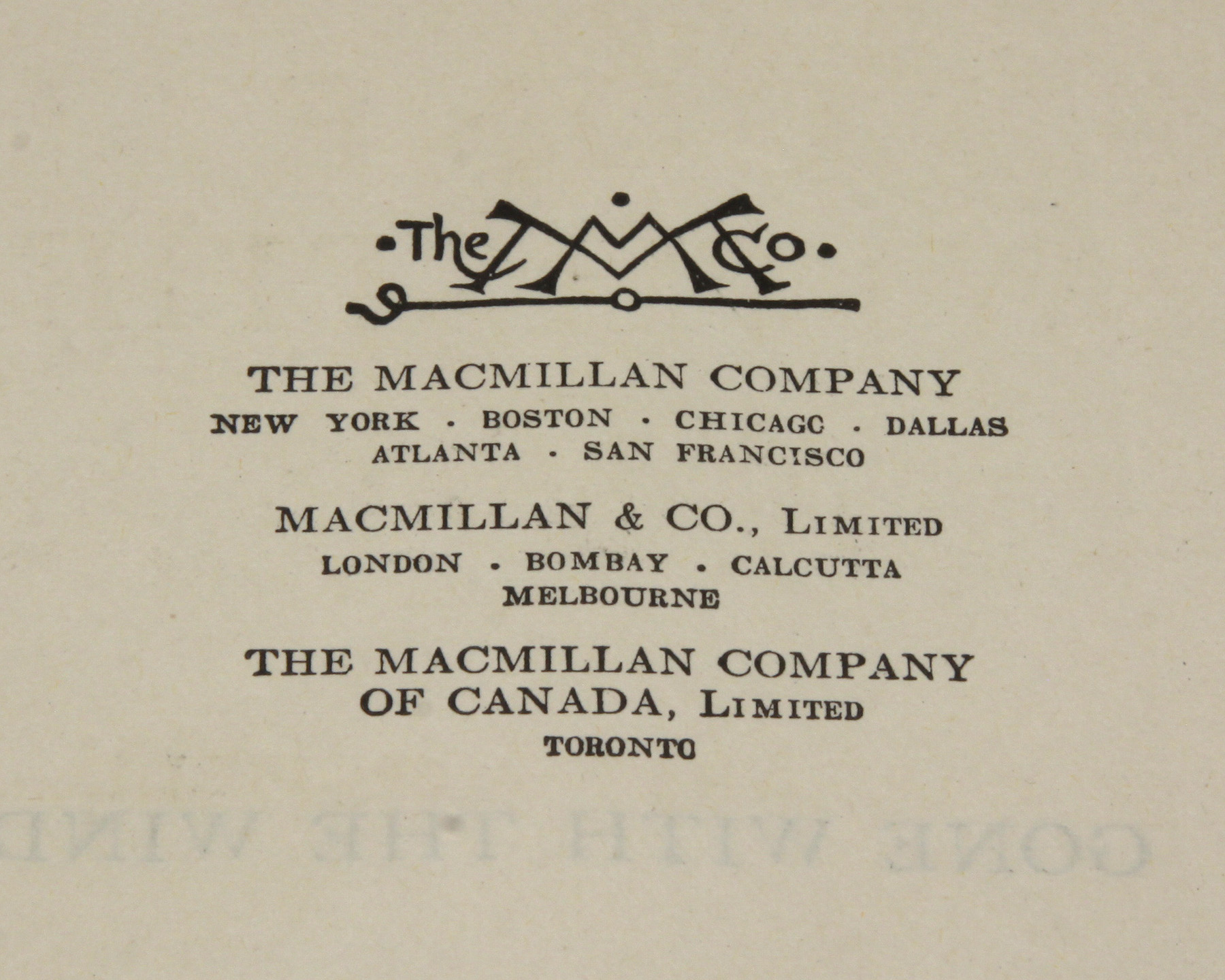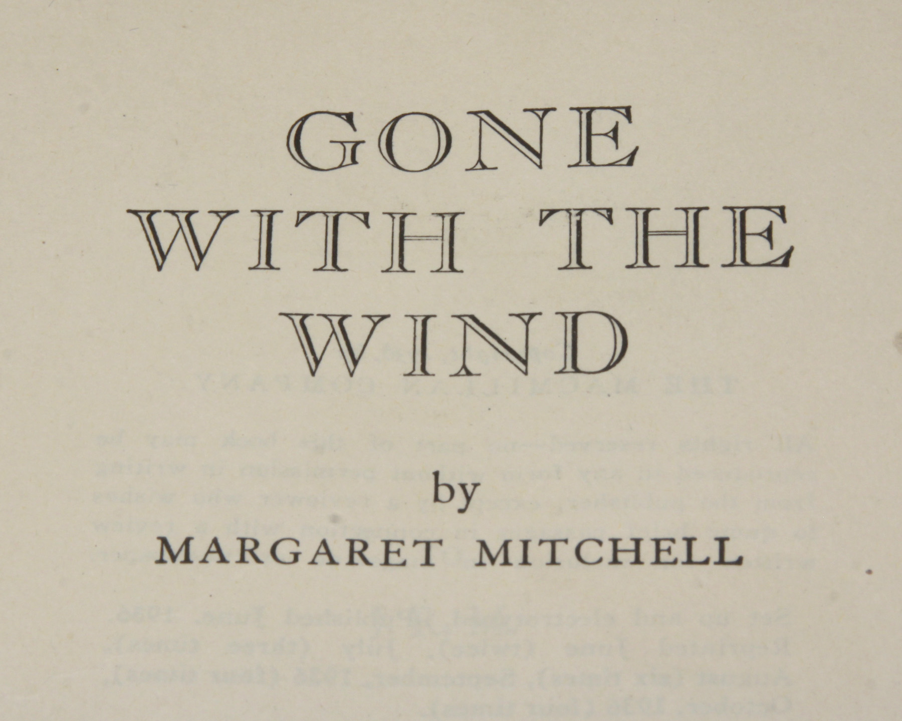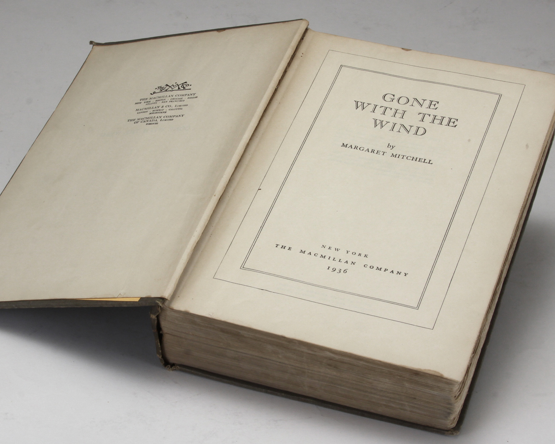 Gone with the Wind. Toronto: Macmillan and Co., 1936. Octavo. [vi], 1037