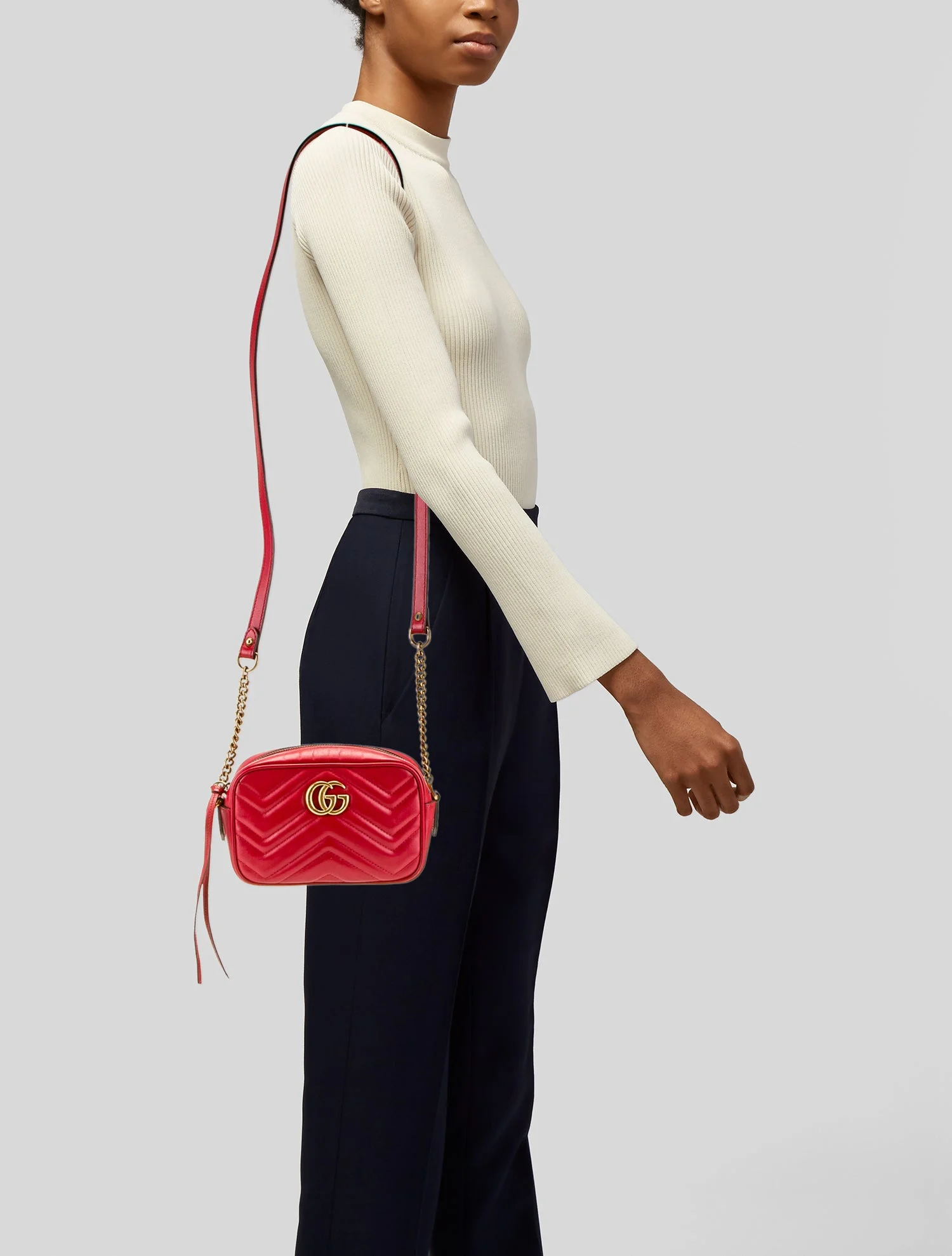 Gucci GG Marmont Matelasse Red Leather Shoulder Bag Cross body w/th Gold Hardware.