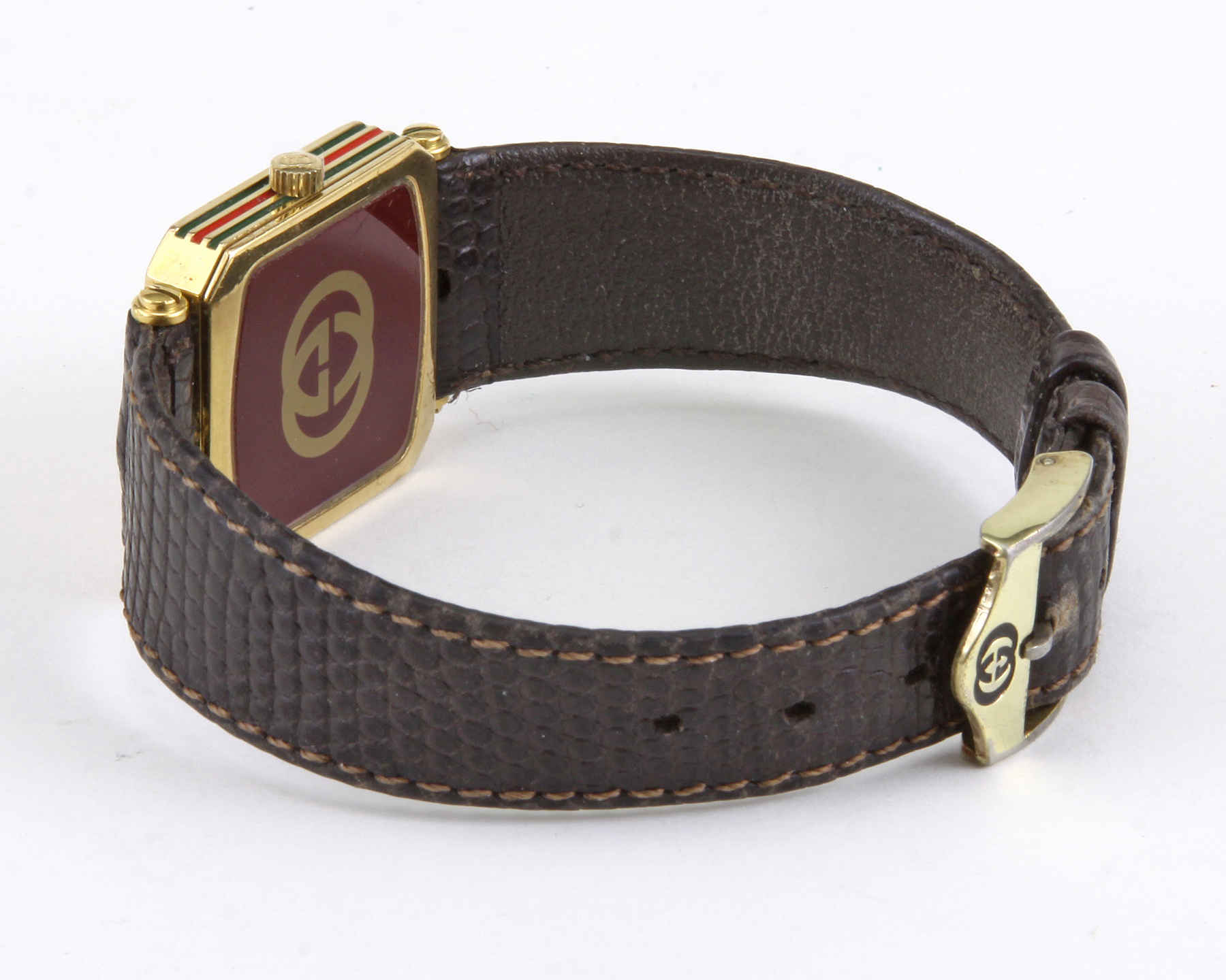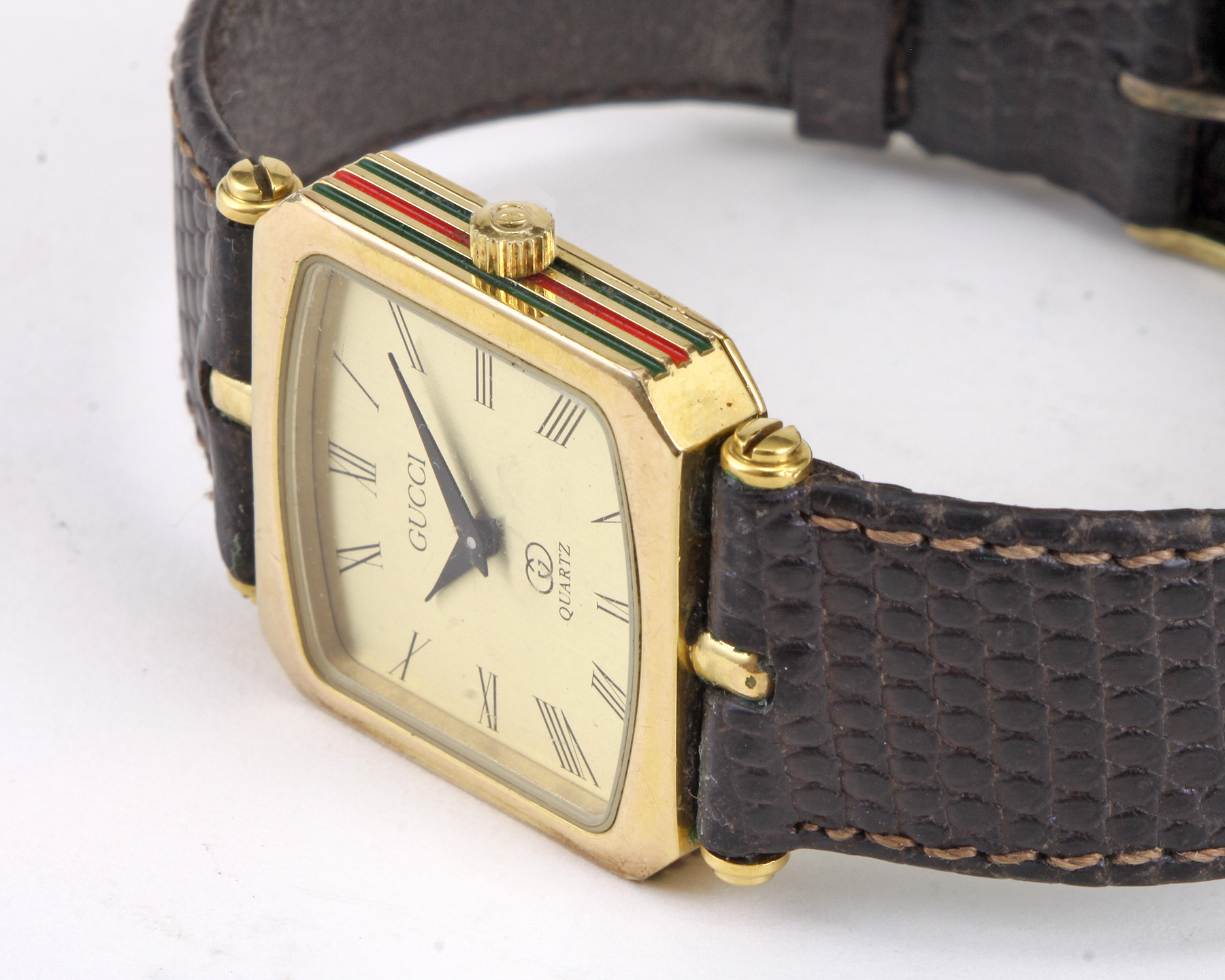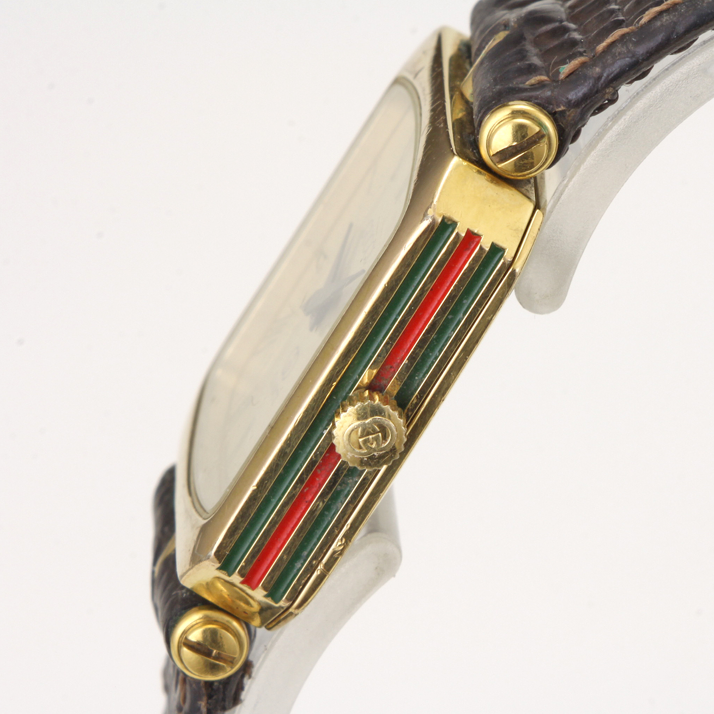 Strap Material: Brown leather (border stitching) Aftermarket.