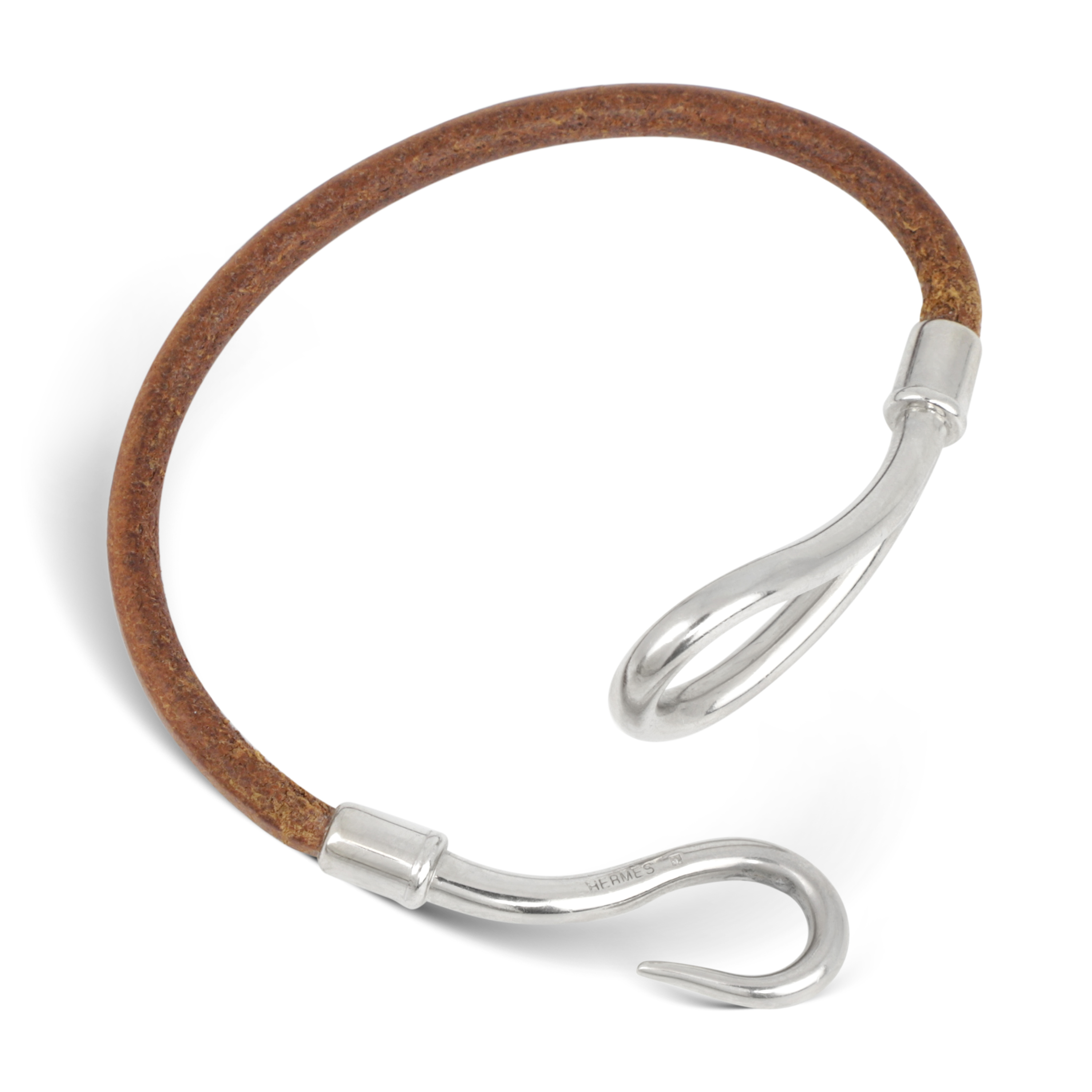 Hermes Jumbo Hook “Brown Leather” Braided Bracelet.