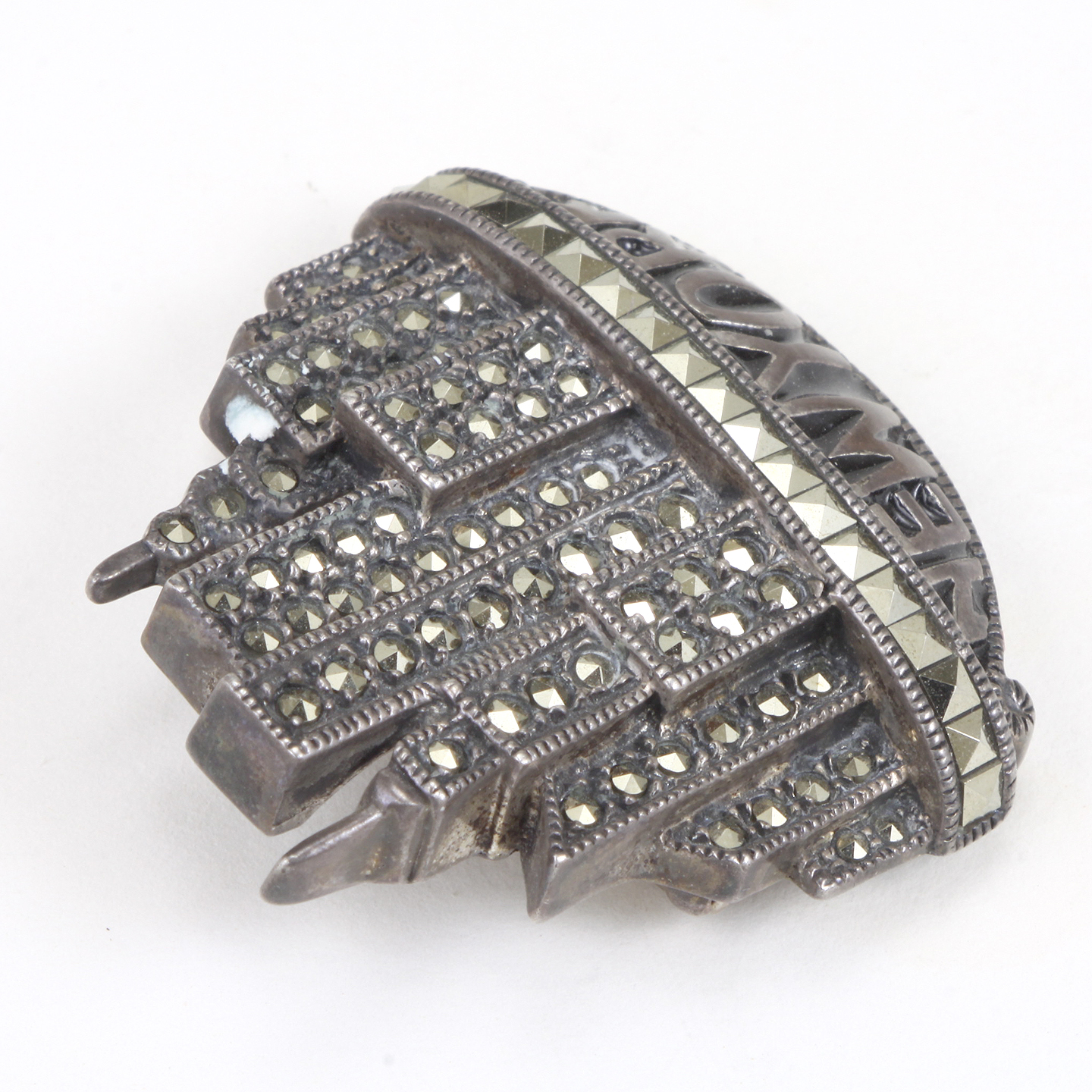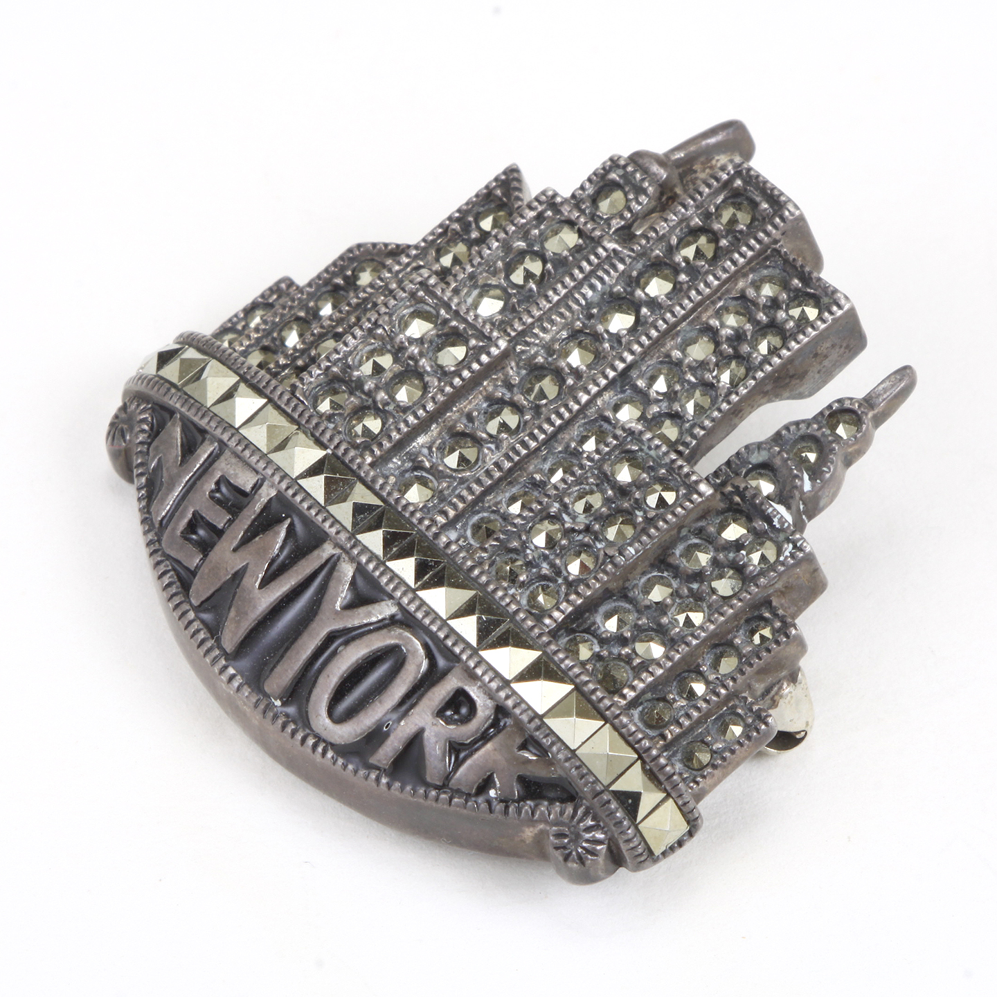 925 Sterling Silver Marcasite "New York" skyline brooch.