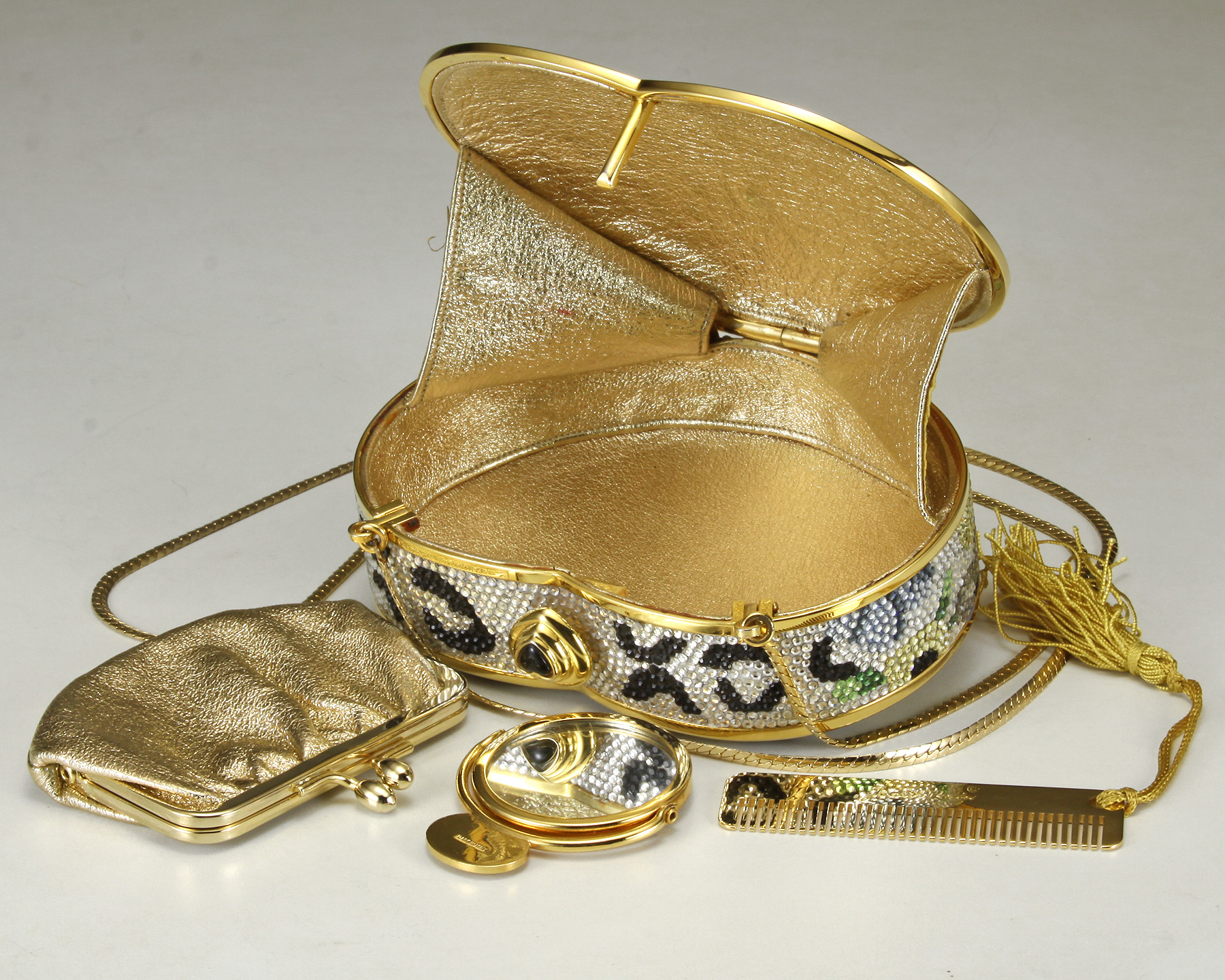 LOT NOTES: This bag includes a Judith Leiber coin purse, mirror, and comb.