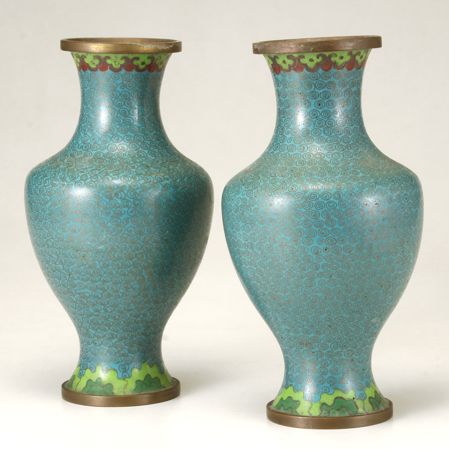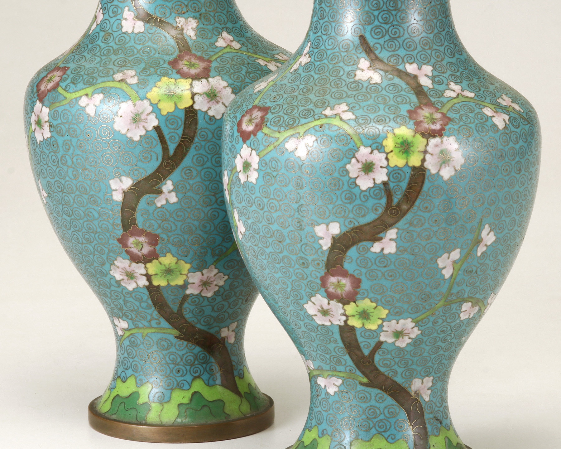 PAIR OF LATE QING DYNASTY (1644-1911), CHINESE CLOISONNÉ ENAMEL VASES