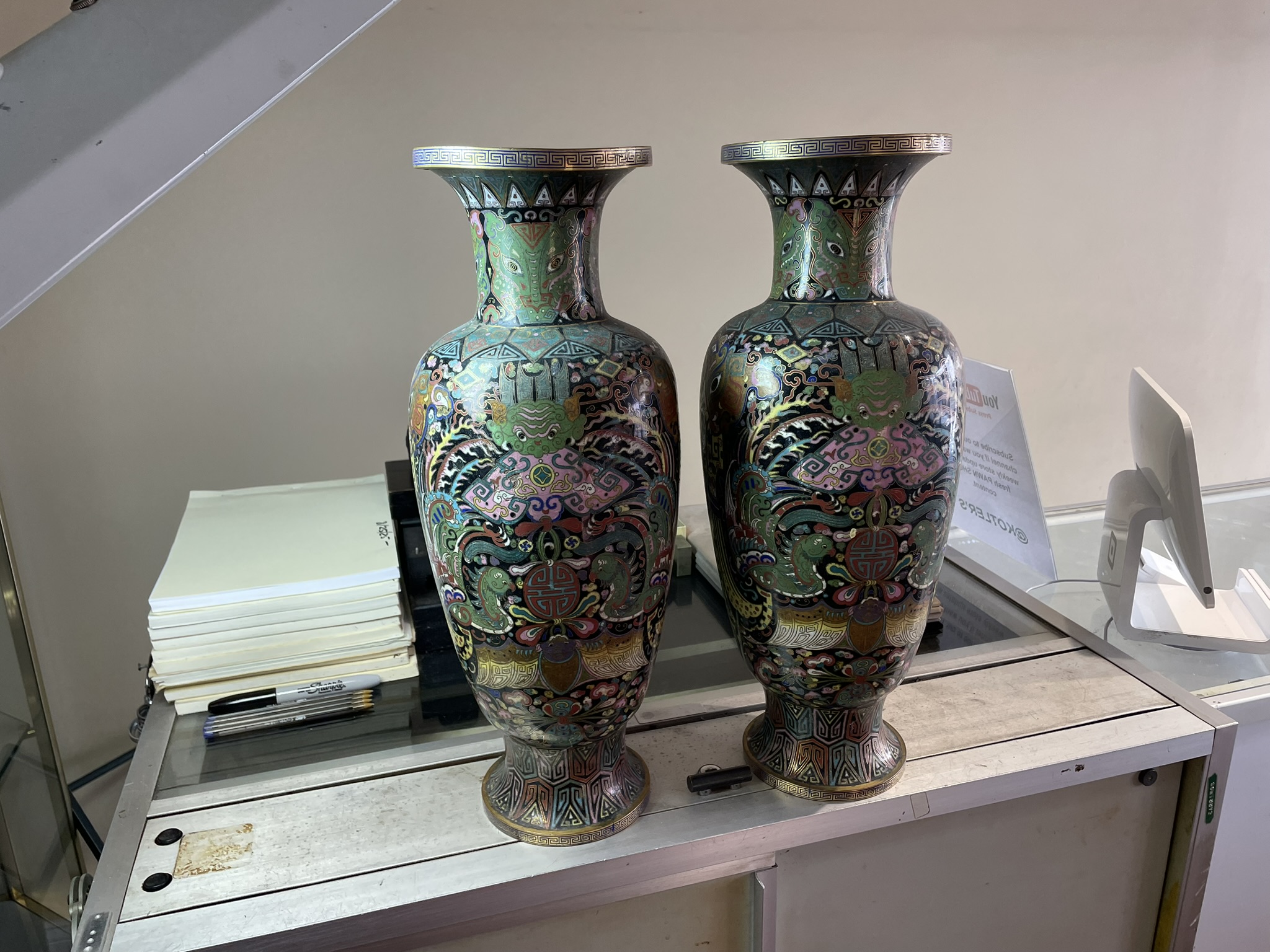 PAIR OF REPUBLIC PERIOD 1912-1949 CHINESE CLOISONNÉ ENAMEL COPPER VASES.
