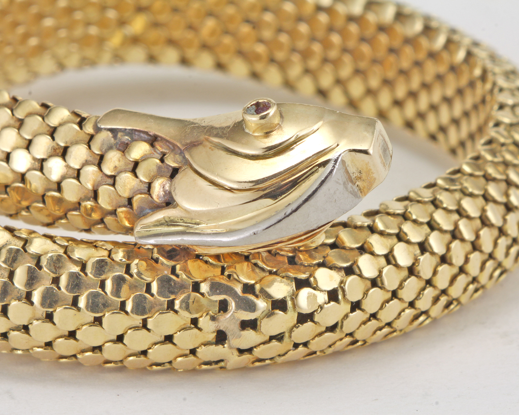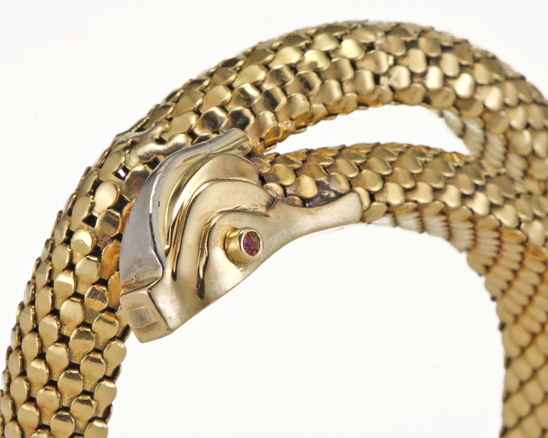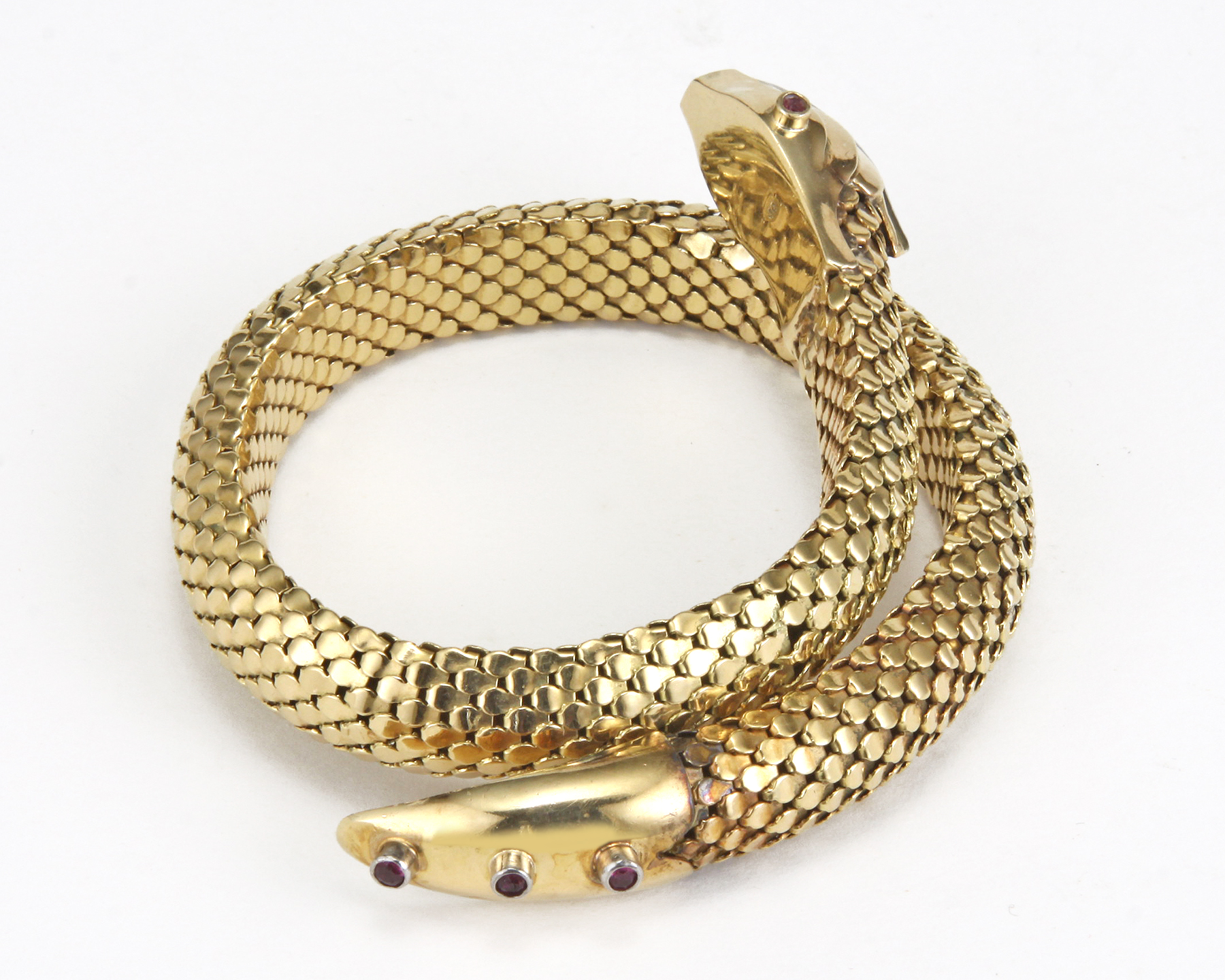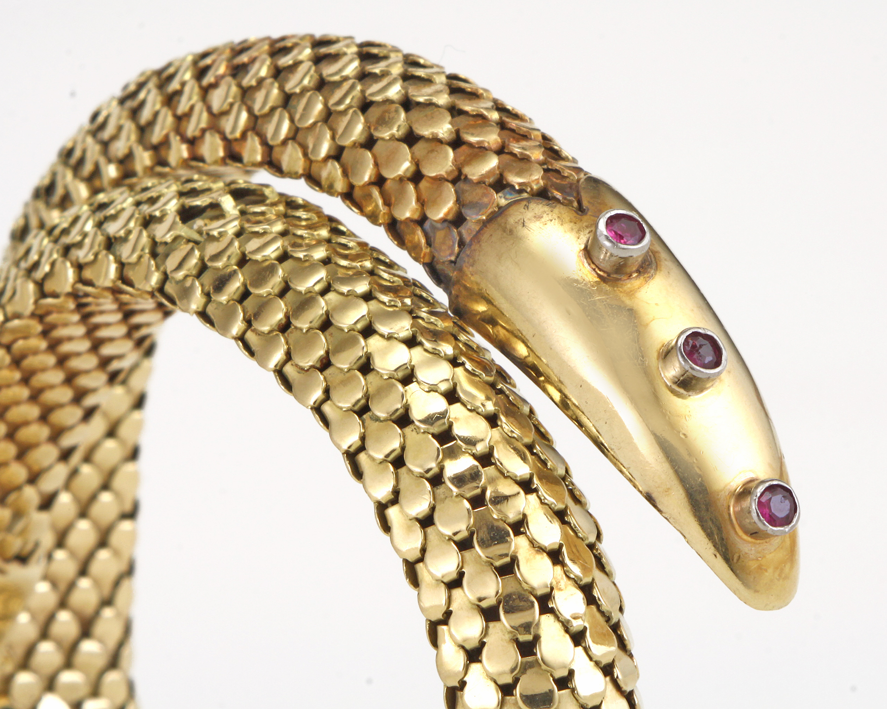 In the style of David Webb 18K Yellow Gold and ruby Chimeral Bracelet.