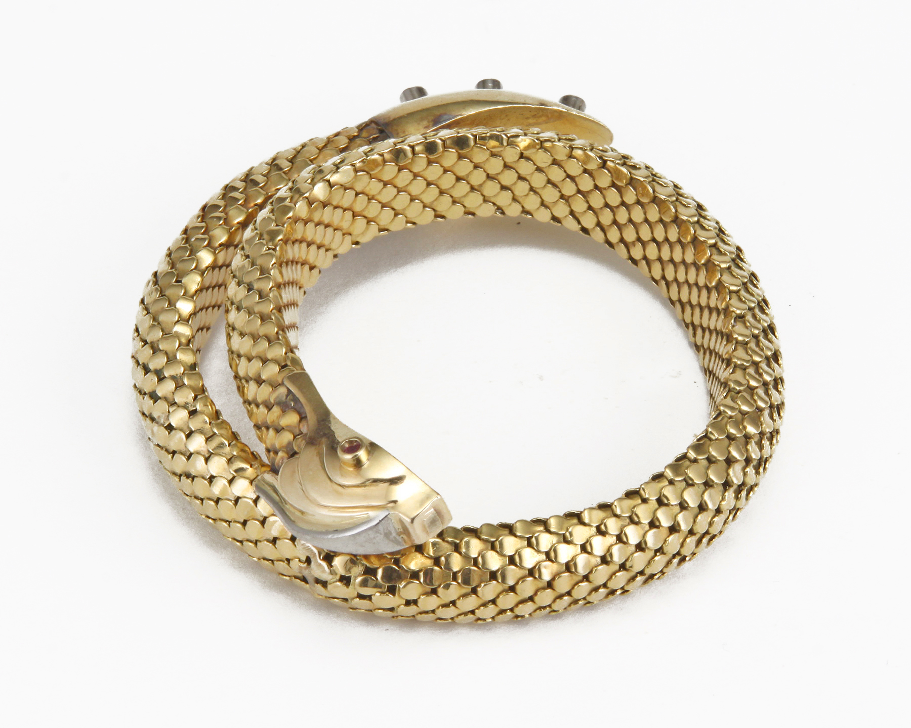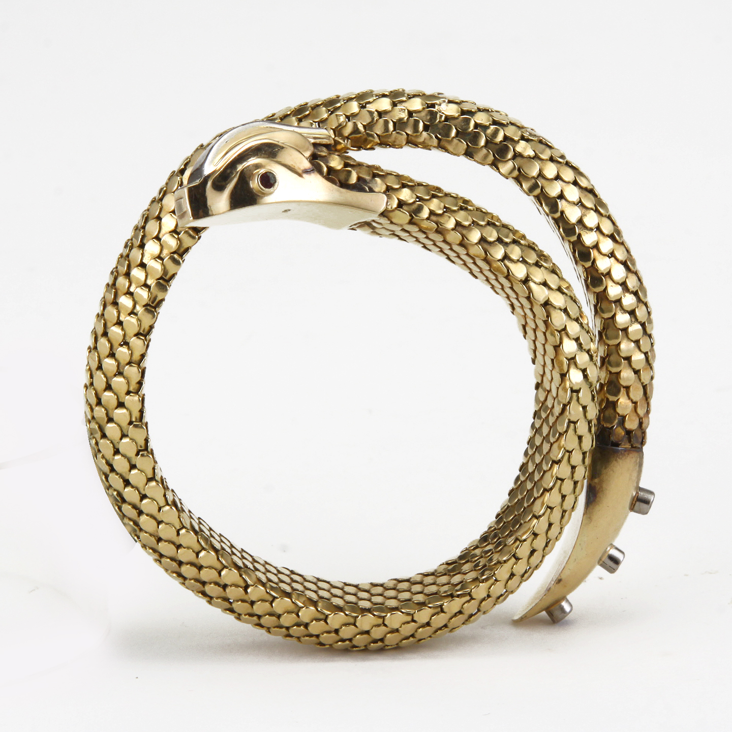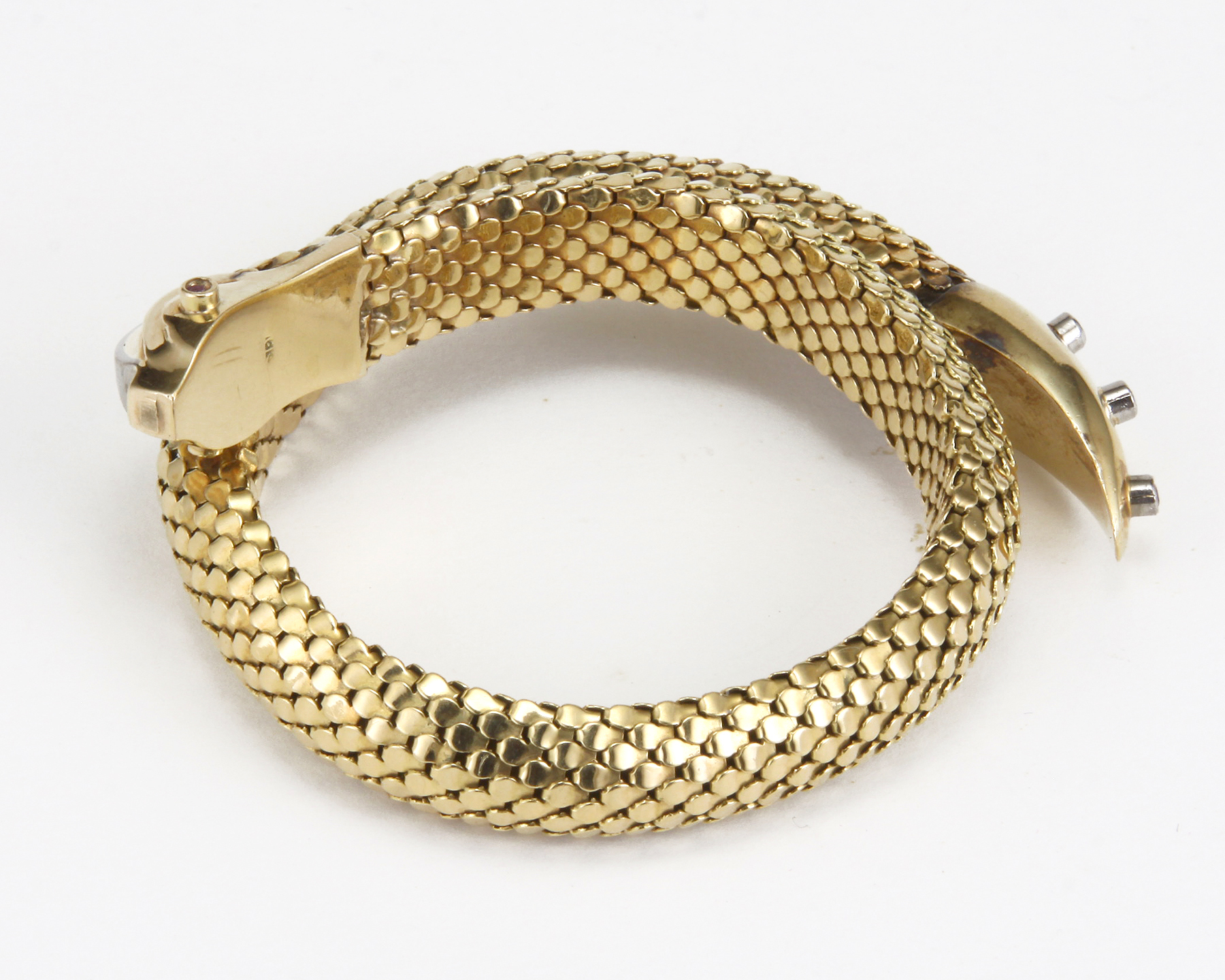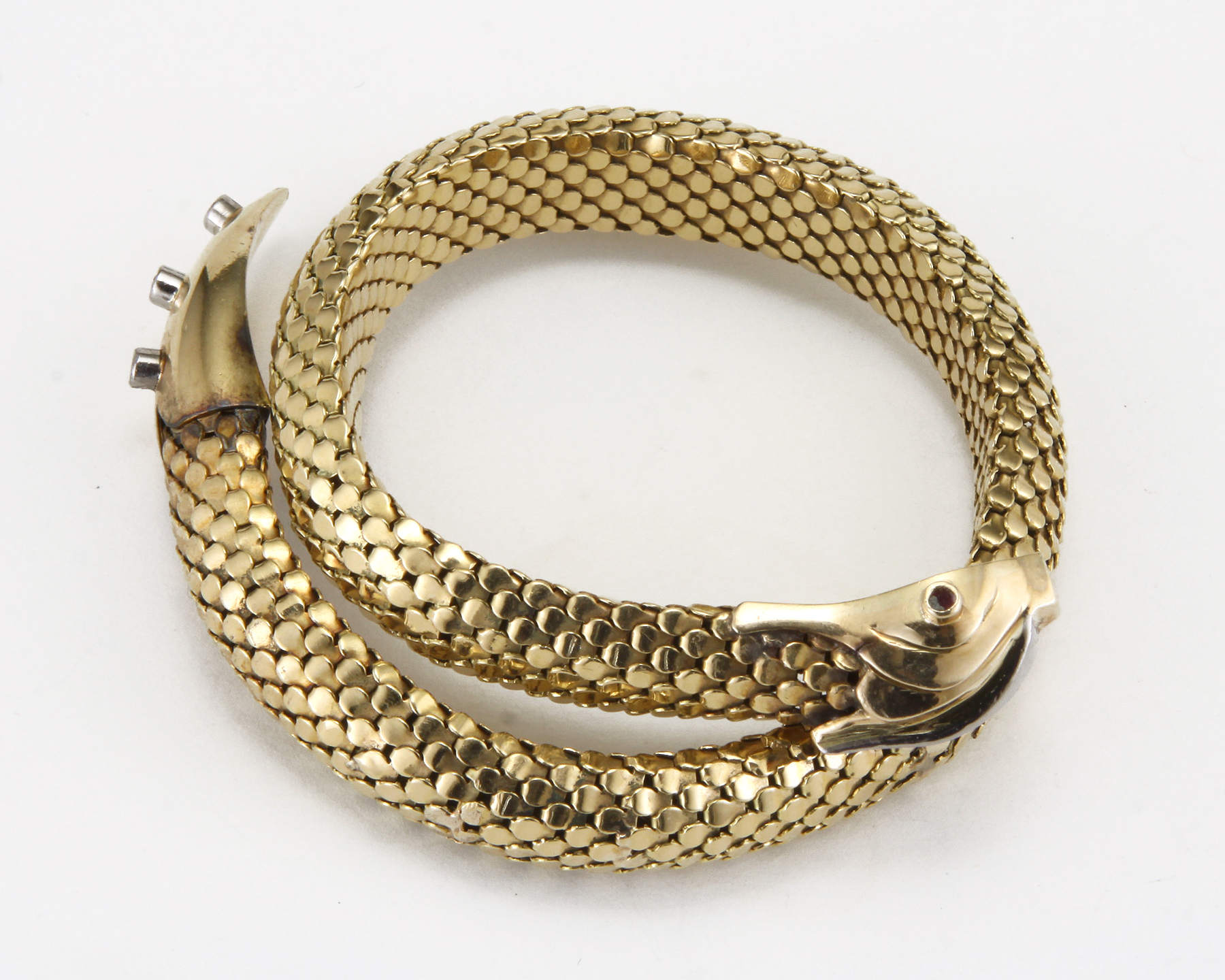 In the style of David Webb 18K Yellow Gold and ruby Chimeral Bracelet.