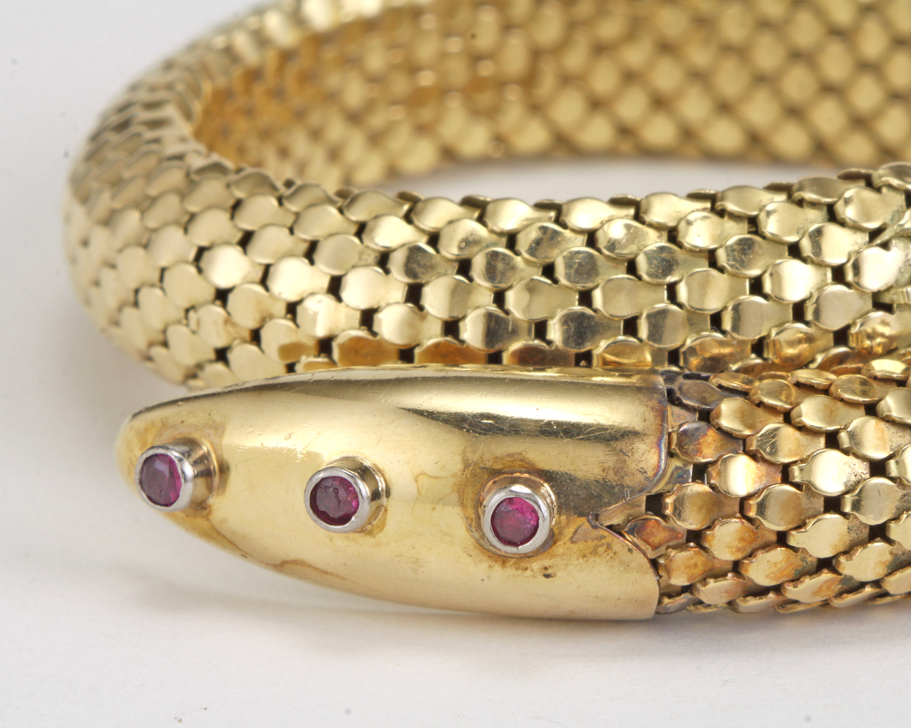 Style of David Webb 18K Yellow Gold and Ruby Chimeral Bracelet.