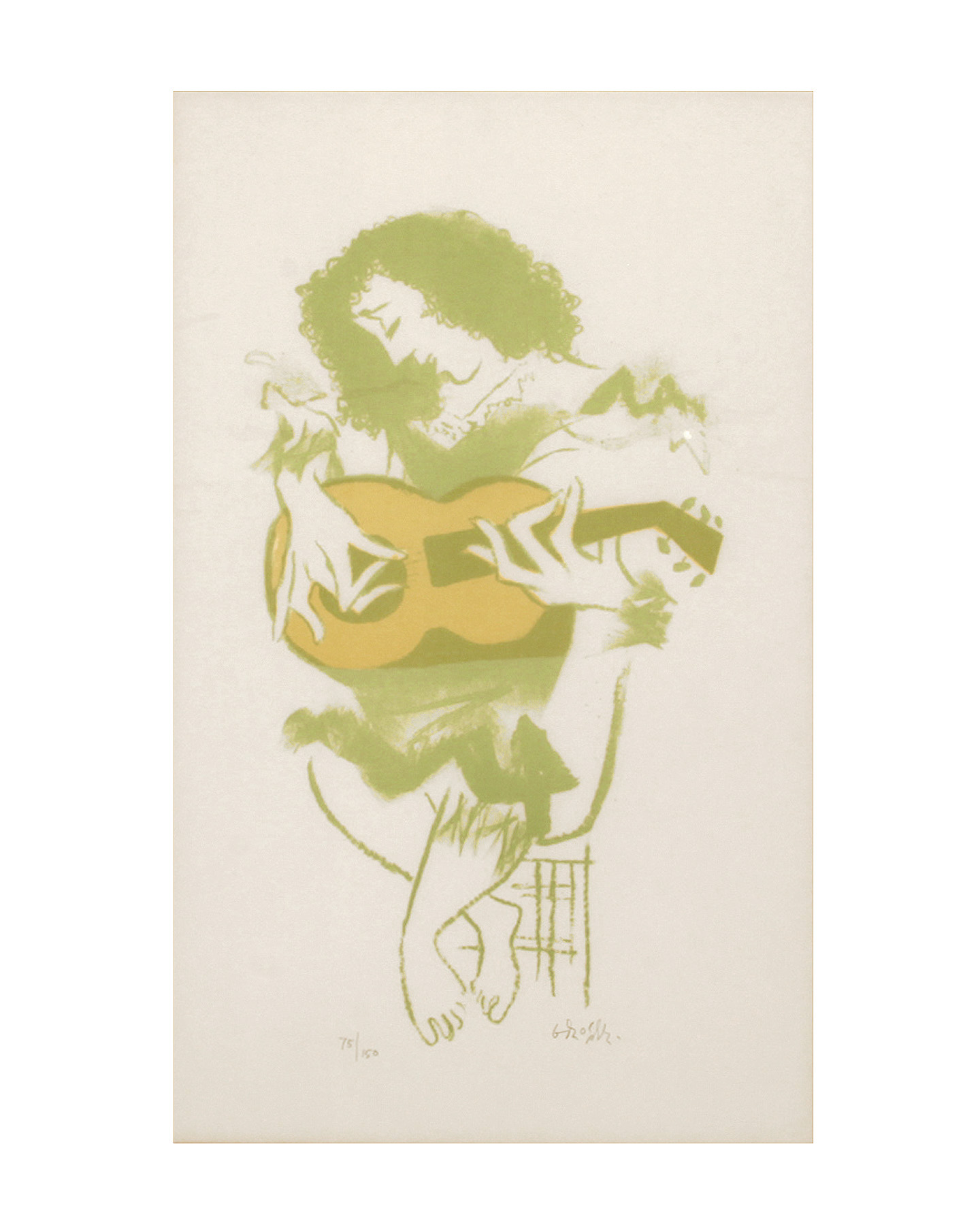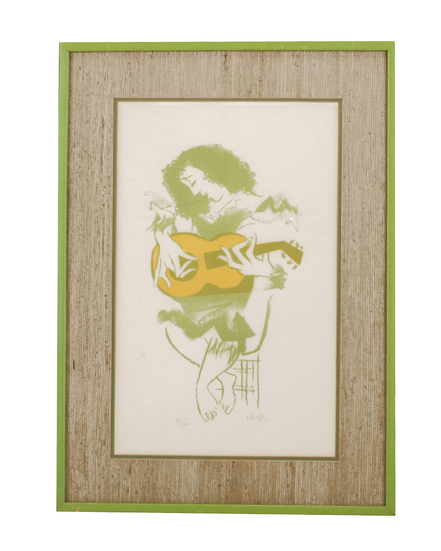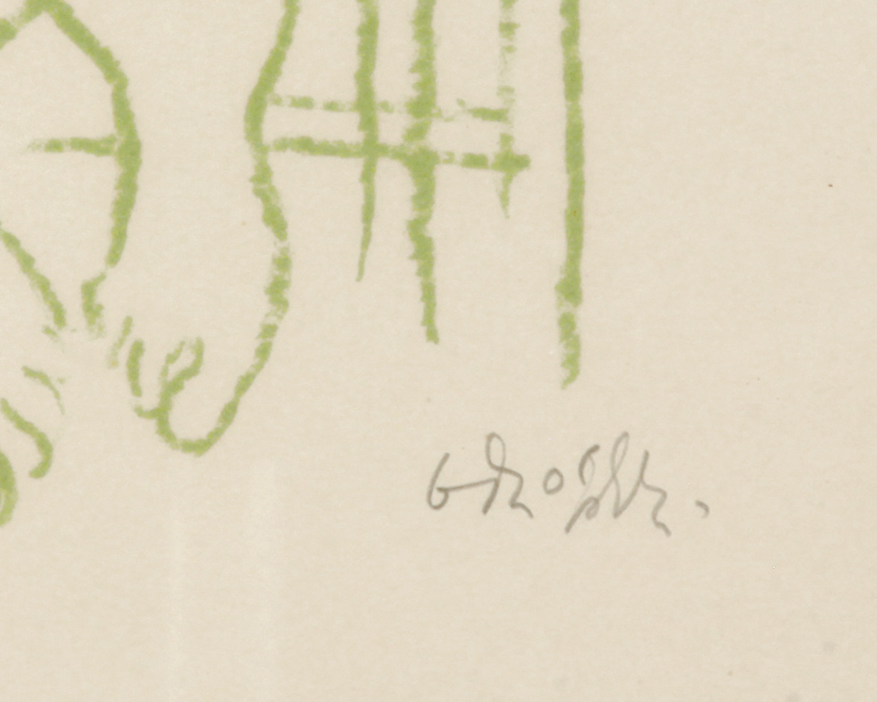 Lot Note(s): Housed in its original lime green frame with rattan matting.